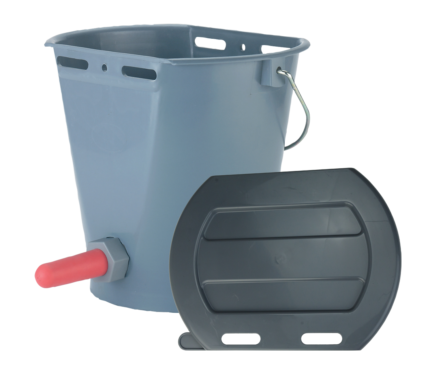 It is essential that the milk for calves is administered at the right temperature. If this is not done properly, there is a chance that it will end up in the rumen, this is wrong because the rumen are not able to digest milk. This can be prevented by using a calf milk heater. The milk will be at the right temperature within 10 to 15 minutes and automatically switches off due to the built-in thermostat. A red warning light will tell you when the calf milk heater is switched on. With the dial you can change various temperature settings. At least 15 cm of milk (in a bucket) is needed in order to heat up the milk.