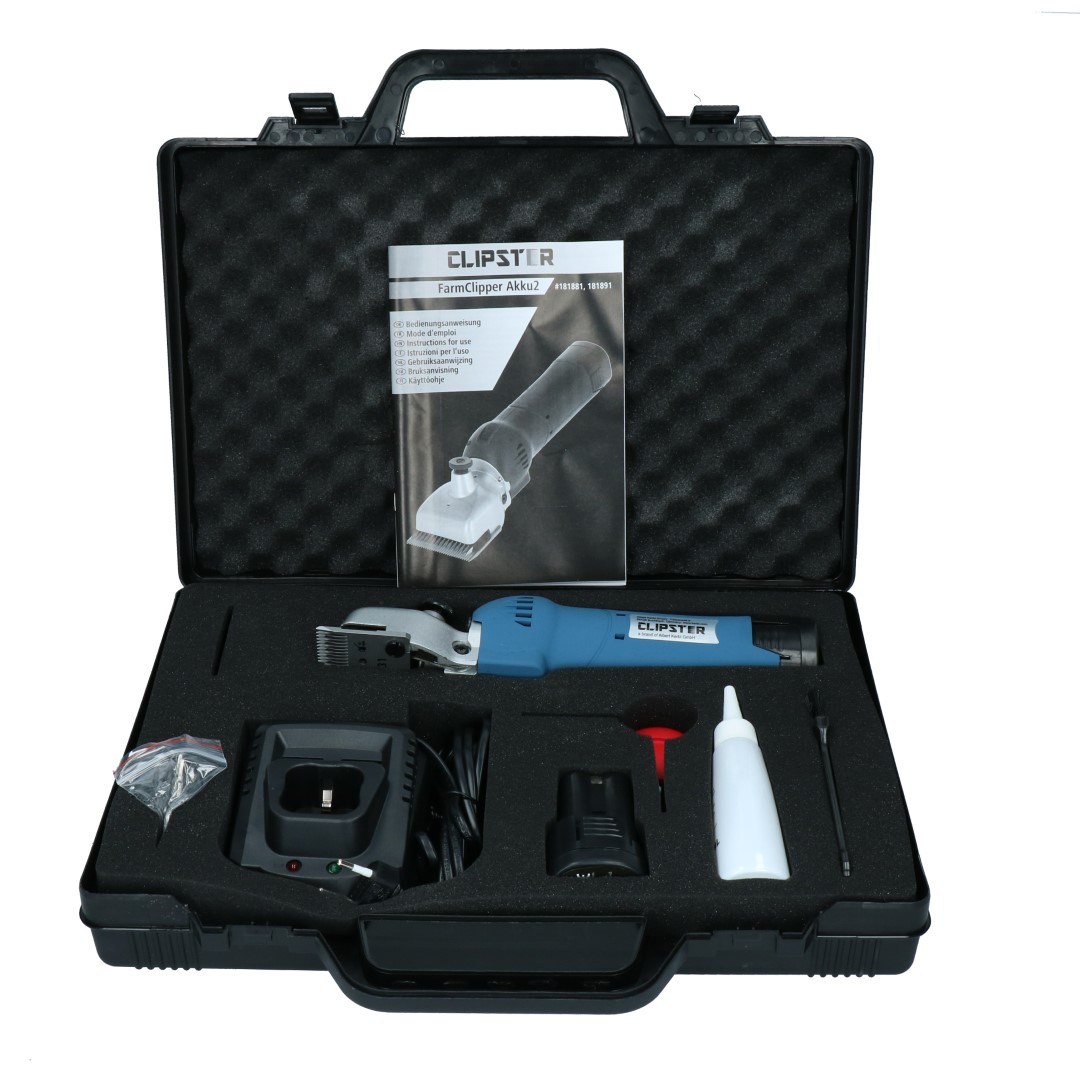 Designed for horses or cattle, the new battery-powered shearer is excellent value for money. It contains two 14.4 Volt Lithium Ion block batteries. Uninterrupted shaving is possible thanks to their optimised operating and charging times.