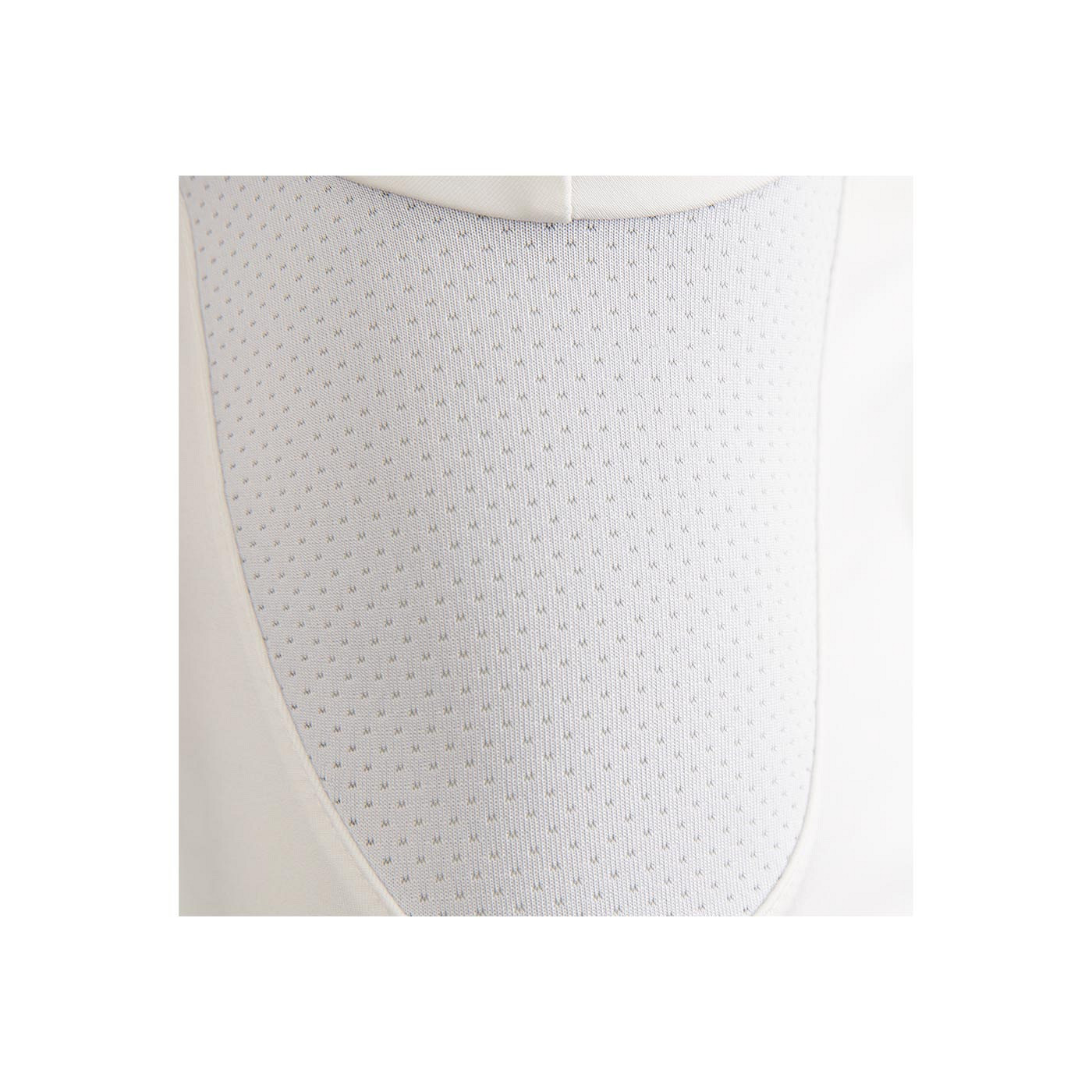 This airy, stretchy competition shirt is suitable for both men and boys. Mesh fabric can be found under the armpits for extra ventilation. The shirt has a polo collar and a button placket with four buttons and at the bottom of the button placket you can find a loop that keeps the tie in place while riding.