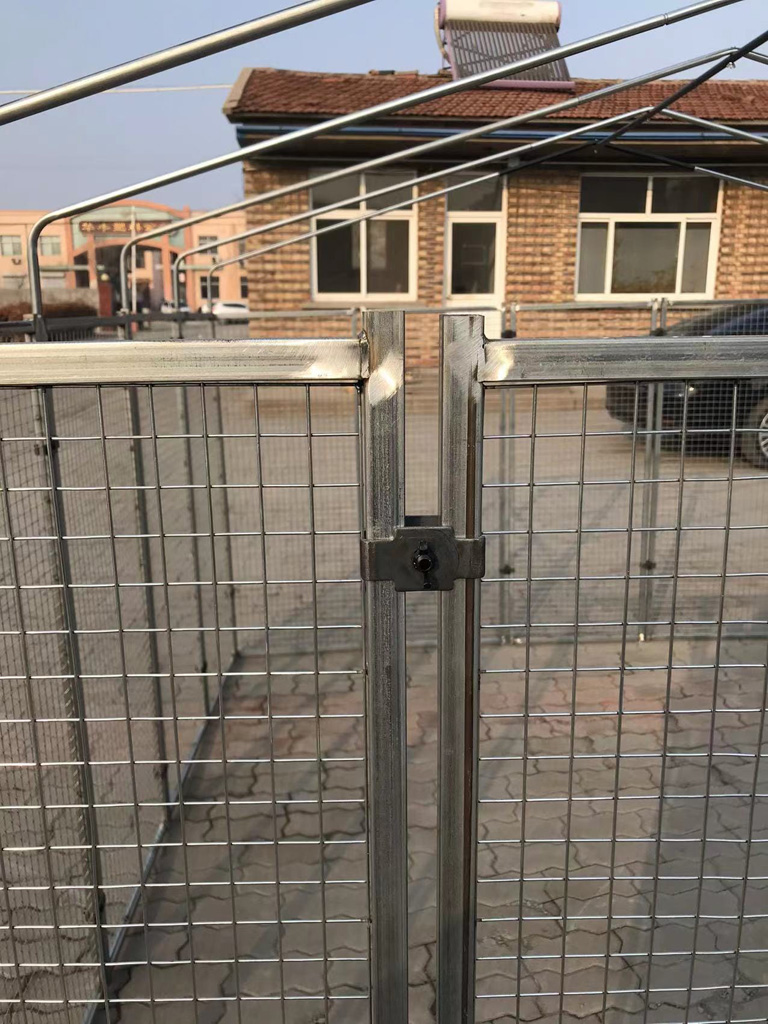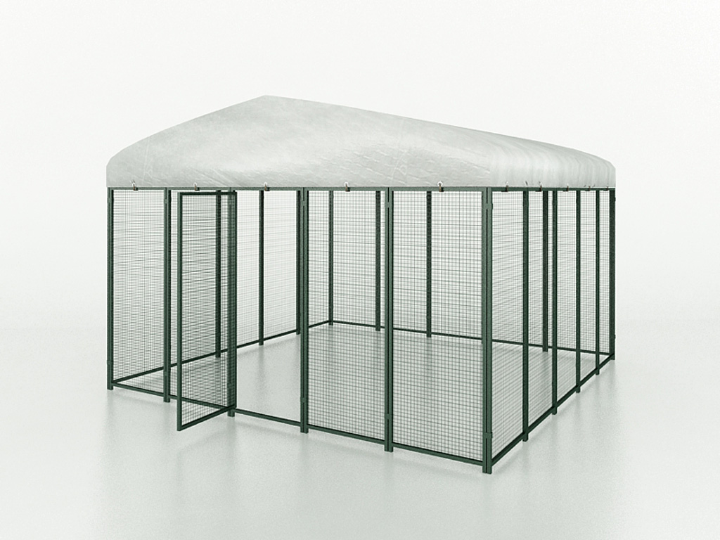 Made of carbon steel with an antioxidant powder coating. The structure is made of 20 x 20 cm tubes with a thickness of 0.8 mm. The mesh net is 25 x 25 mm and has a thickness of 1.8 mm. With a roof made of premium polyethylene (PE), which is water-repellent and UV-resistant. The colour is green (RAL 6005).
