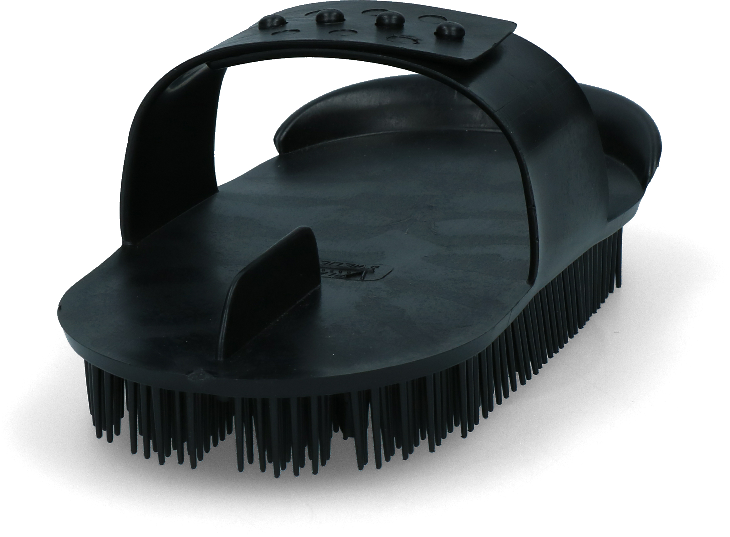 This durable curry comb is adjustable in size and made of slightly flexible plastic.