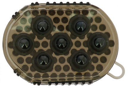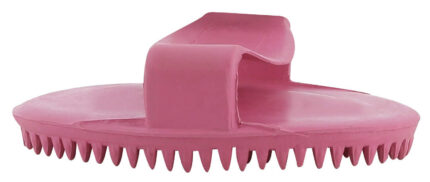 Oval, rubber curry comb with short teeth and hand grip. Ideal for removing old, loose hairs from the coat. The round, brushing movements massage the horse, which stimulates good circulation, relaxes the horse and results in a beautiful, shiny coat. Made of 100% natural, safe, non-toxic rubber (PAH free). VE6