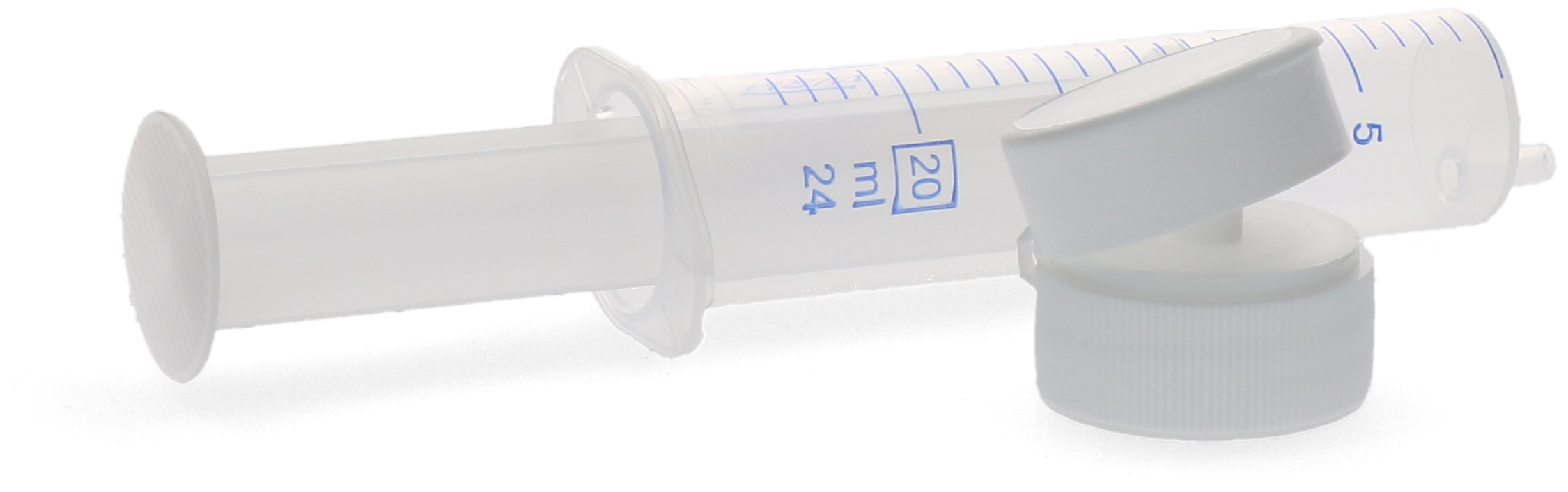 Dosing syringe (20/24 ml) and cap (Luer).