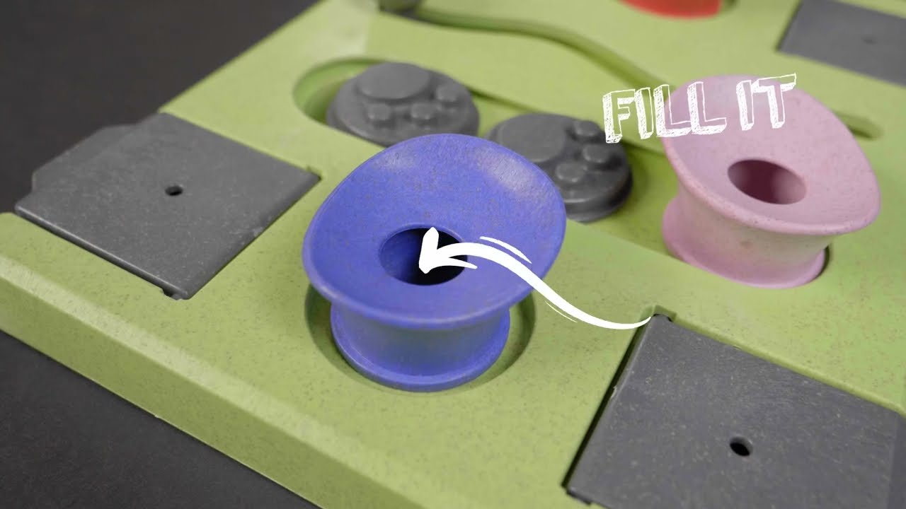 The Eat Slow Live Longer Puzzle is a fun way to keep dogs occupied and reward them at the same time. By hiding kibble or snacks in the puzzle, dogs will have to do their best to find all the treats by sliding, twisting and opening parts. This provides mental and physical challenge and it can help reduce boredom, anxiety and destructive behaviour. In addition, it can strengthen the bond between owner and dog when they interact with the puzzle together. The feeding puzzle can also be used as a slow feeder. The puzzle has non-slip feet and is dishwasher-safe.
