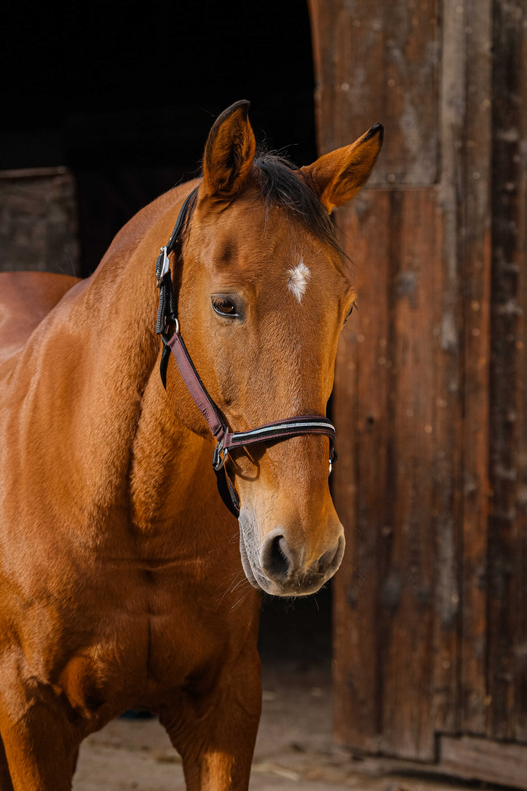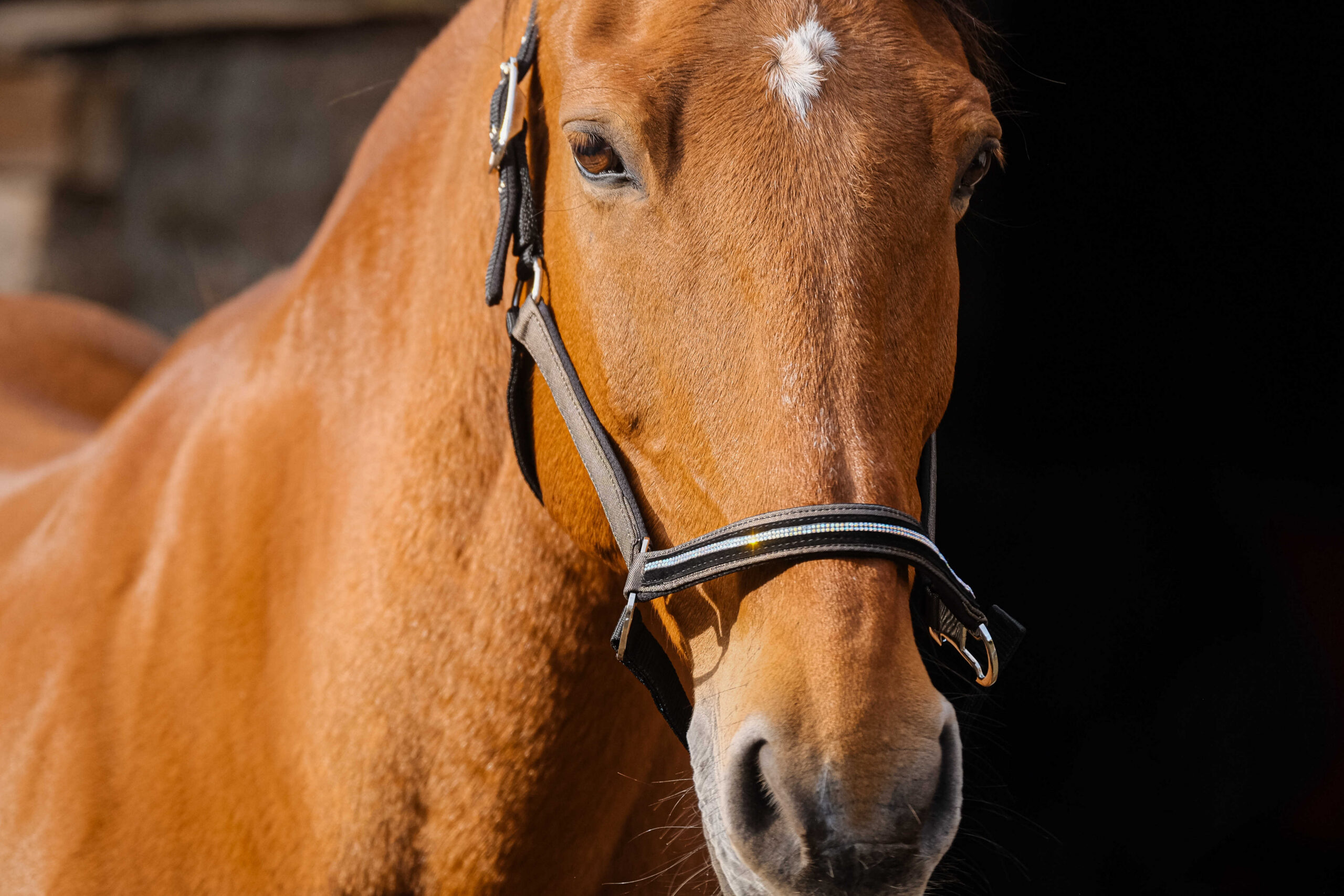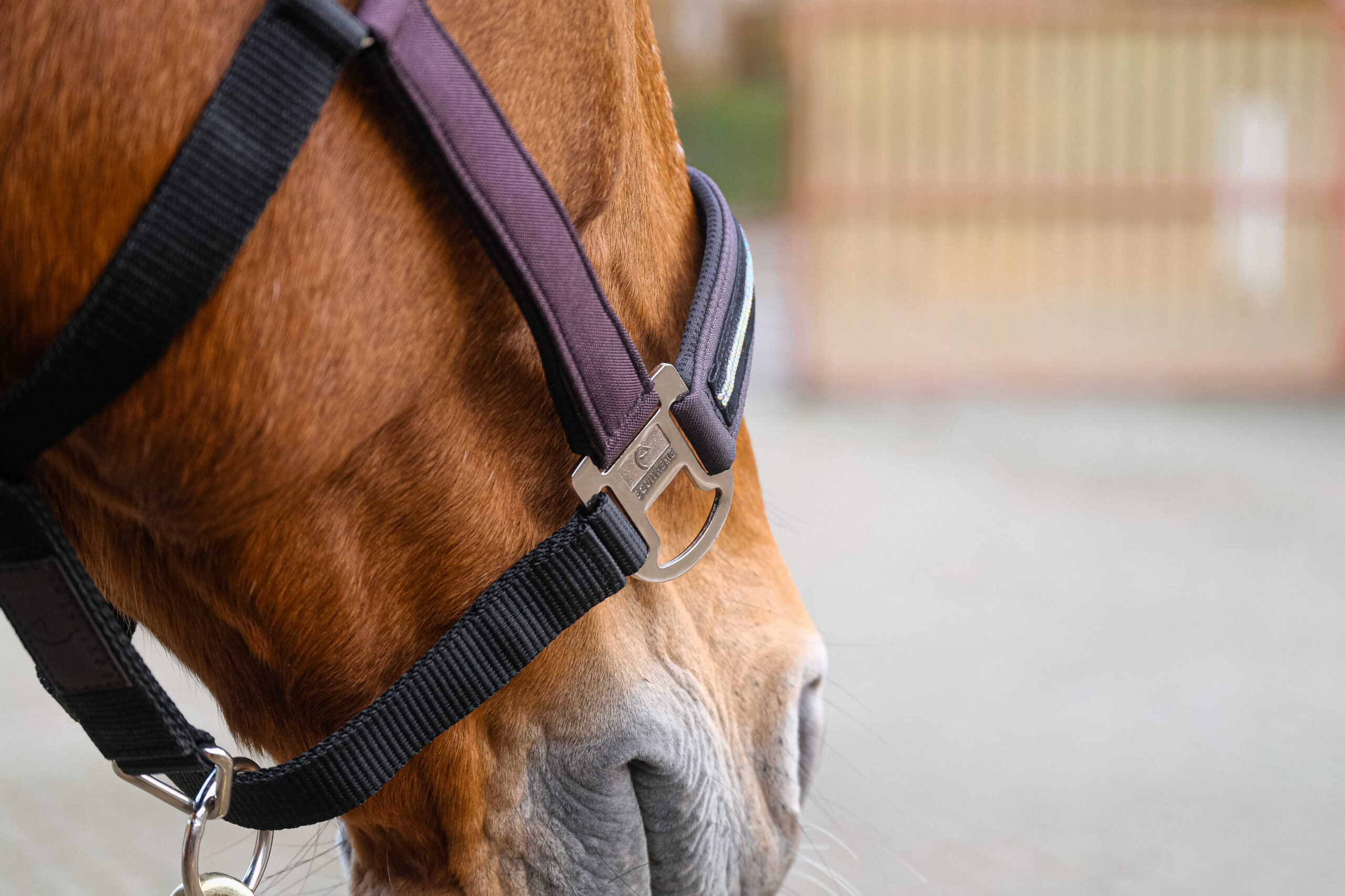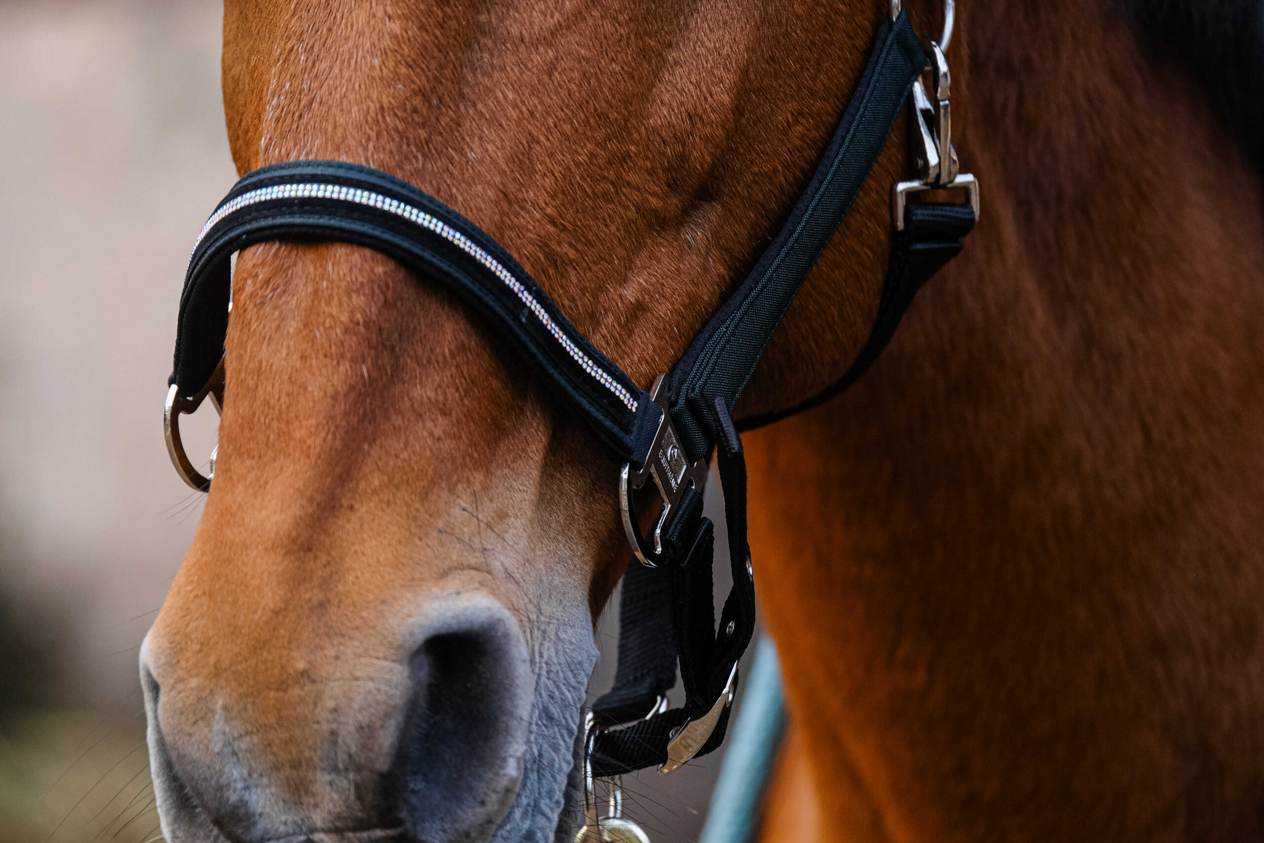 – Sparkling design: Made of metallic-effect nylon, with a noseband decorated with velvet and mini rhinestones.
