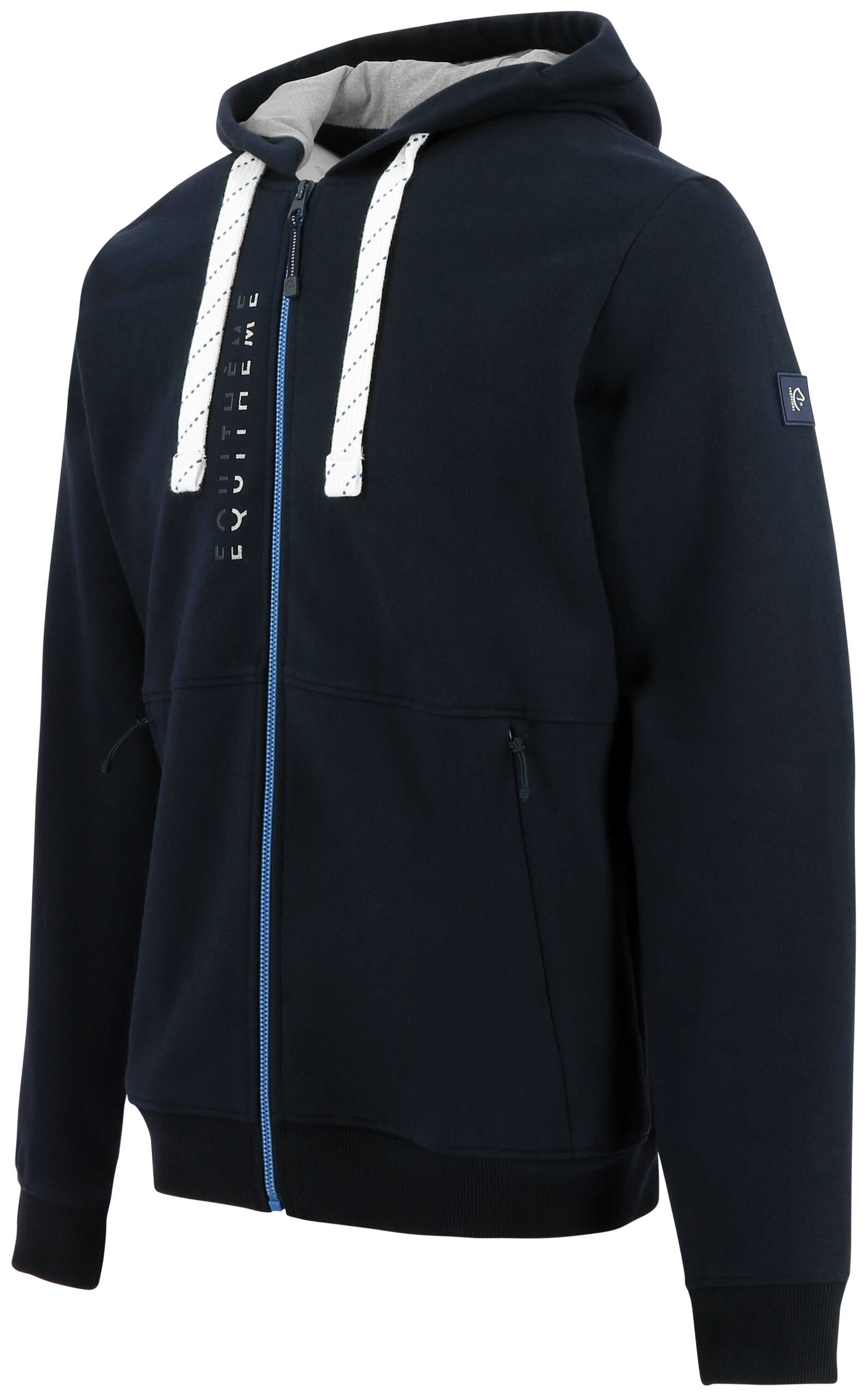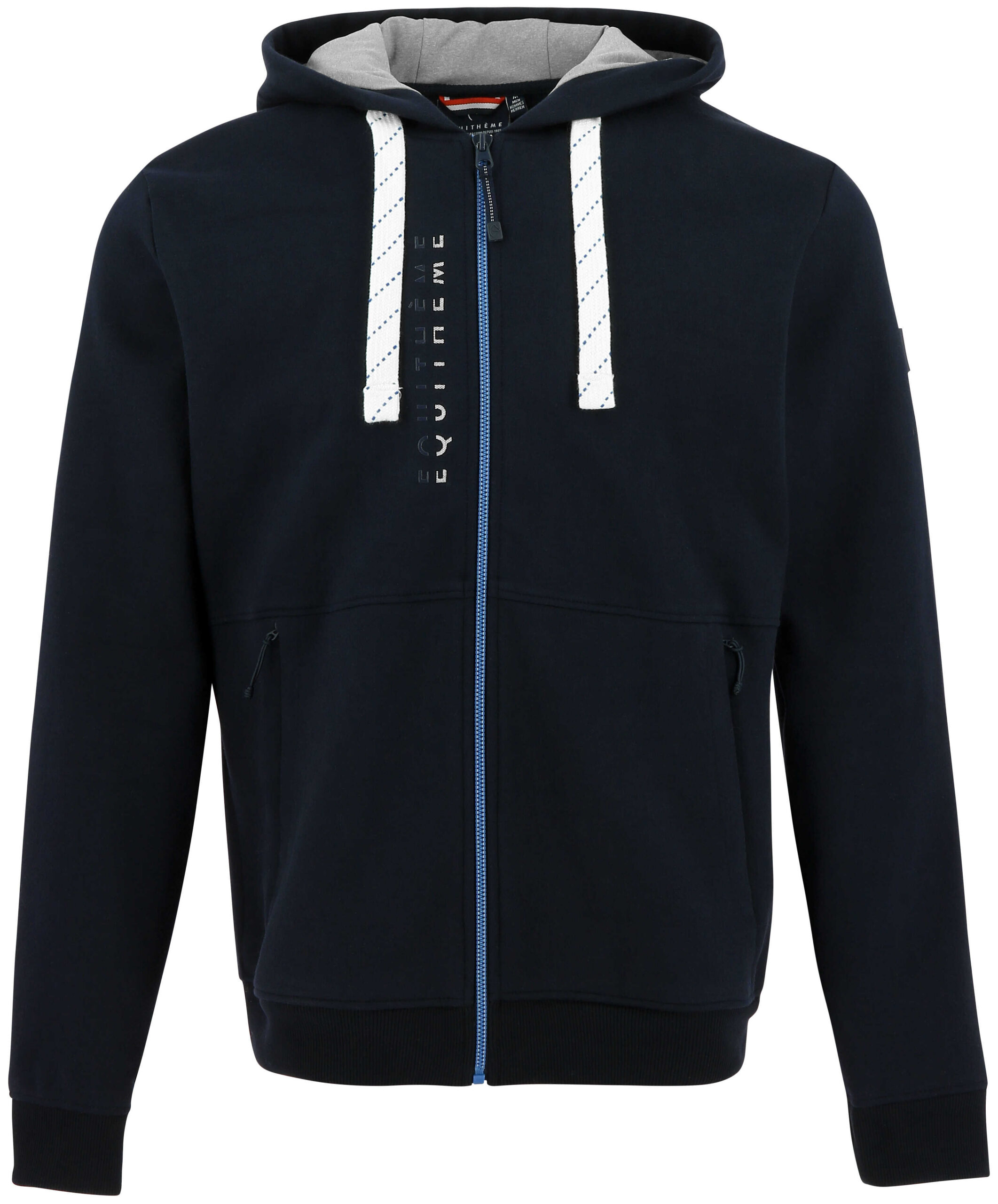 – Heather gray, double-layered hood, adjustable with drawstring, and zippered hand pockets.
