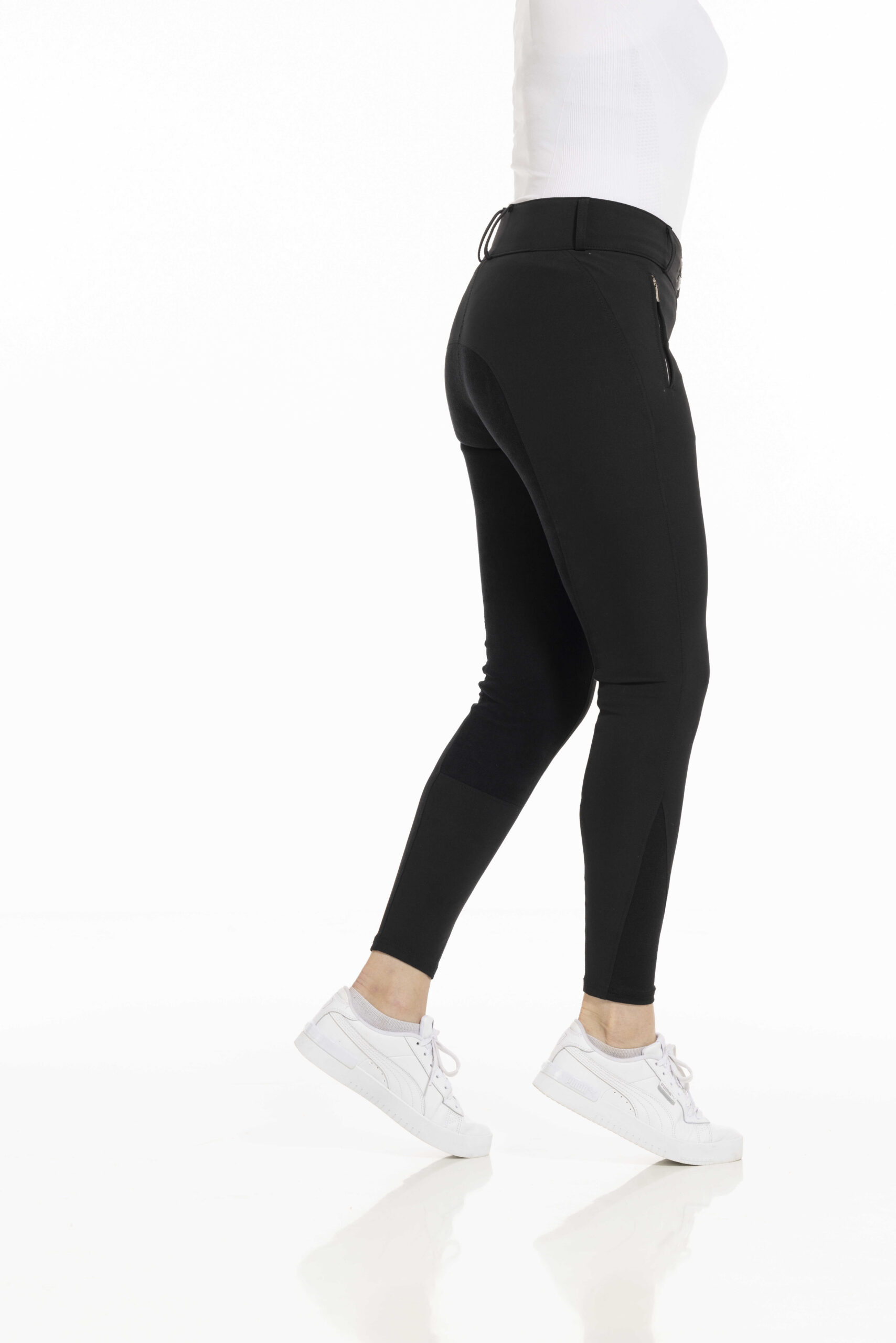 – Non-slip: Stretchy synthetic leather trim (Clarino) for optimal grip in the saddle.