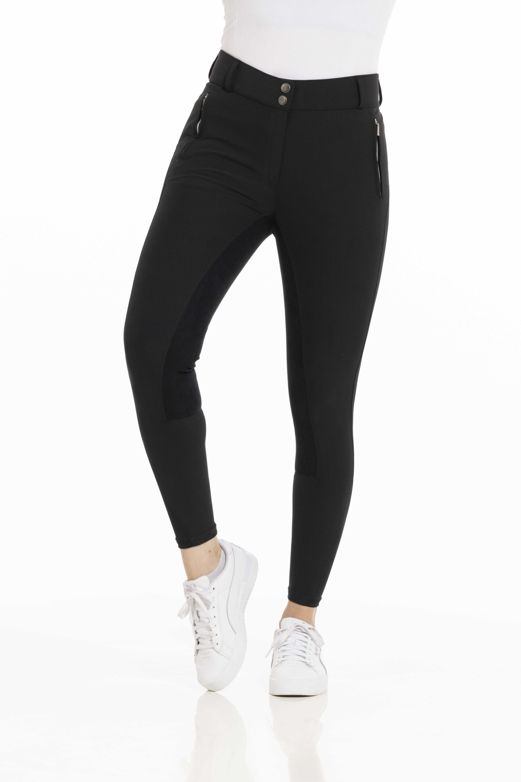 Riding breeches with synthetic leather trim for optimal support!