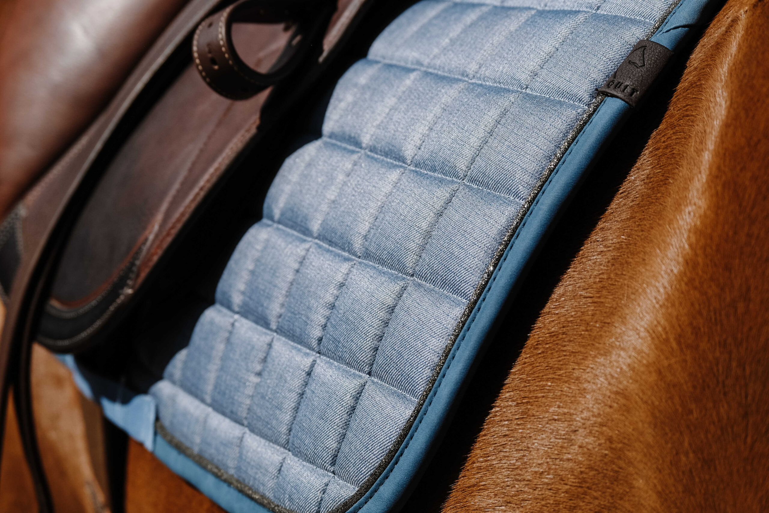 – Square quilting and strap loops.
