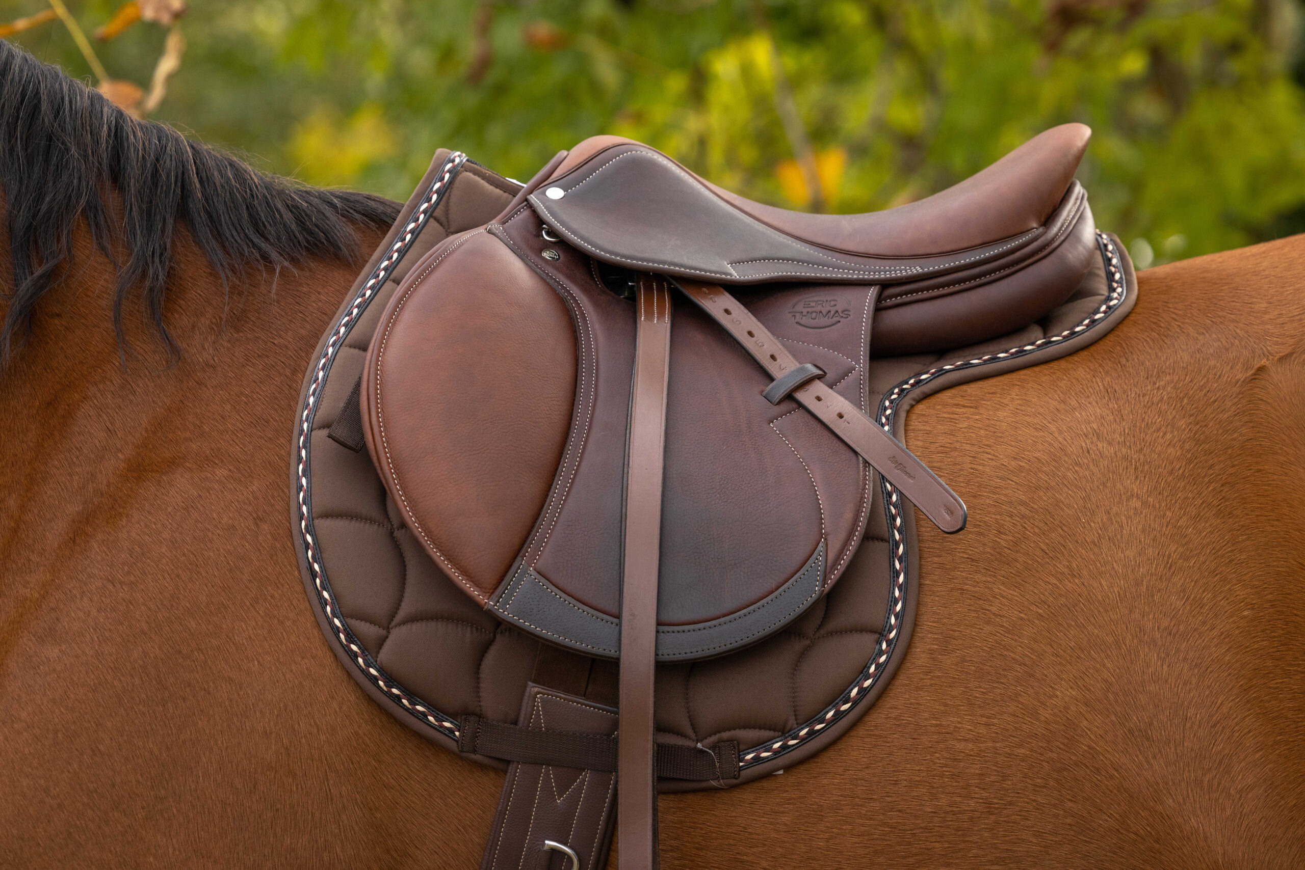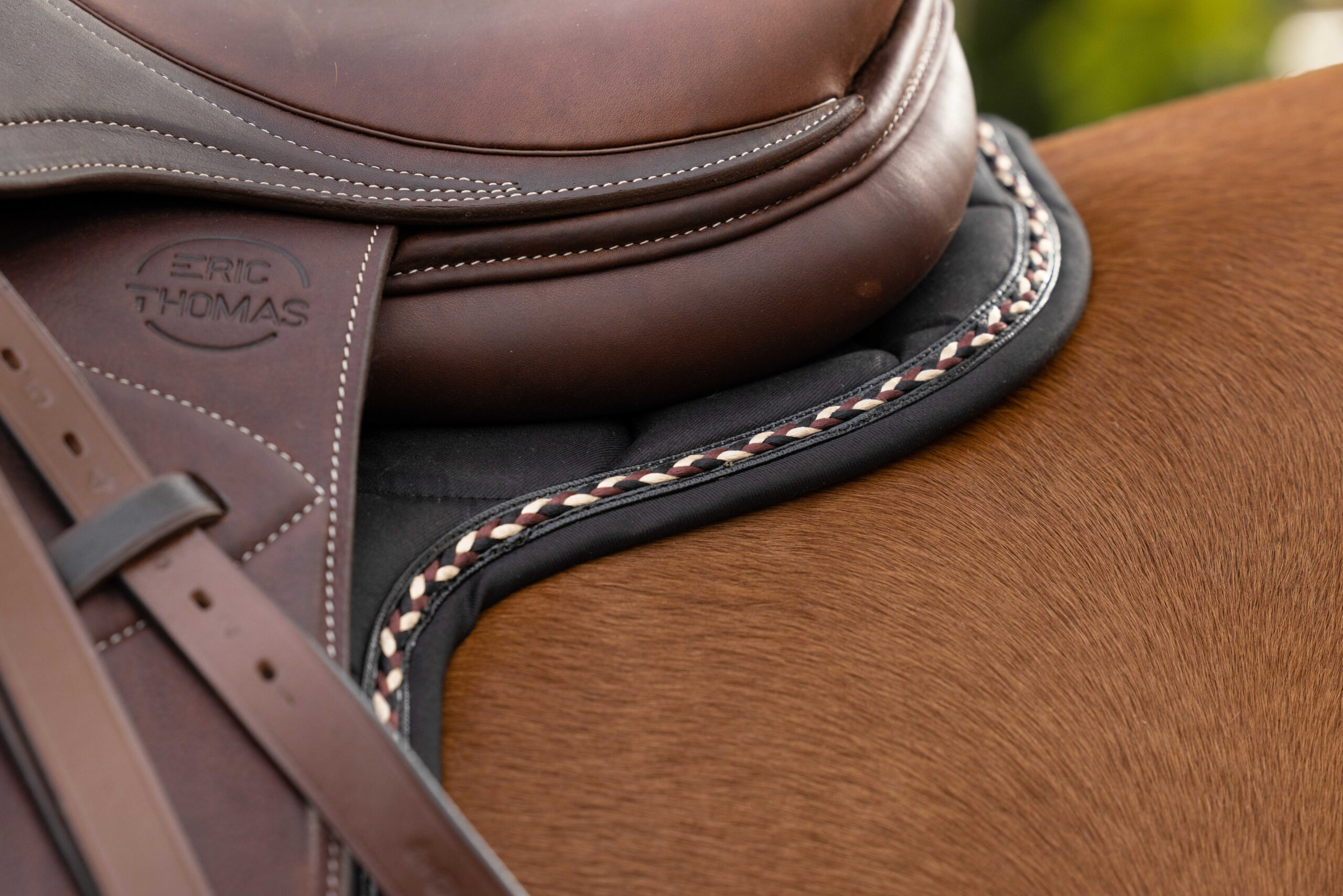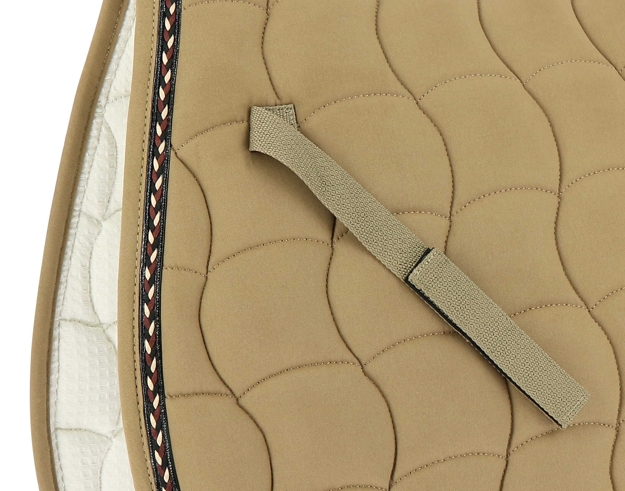 – Tricolor braiding on the edge.