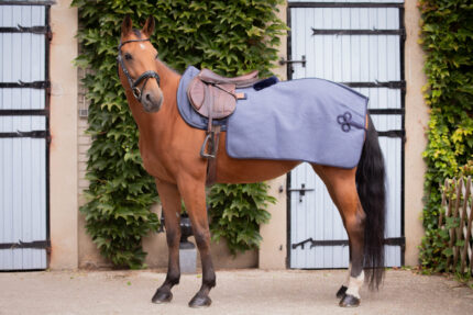 High-quality softshell rug. Waterproof and breathable, ideal for transitional seasons. Lined with very dense faux lambskin at the neckline for added comfort. With a hook-and-loop closure at the withers and tail strap.