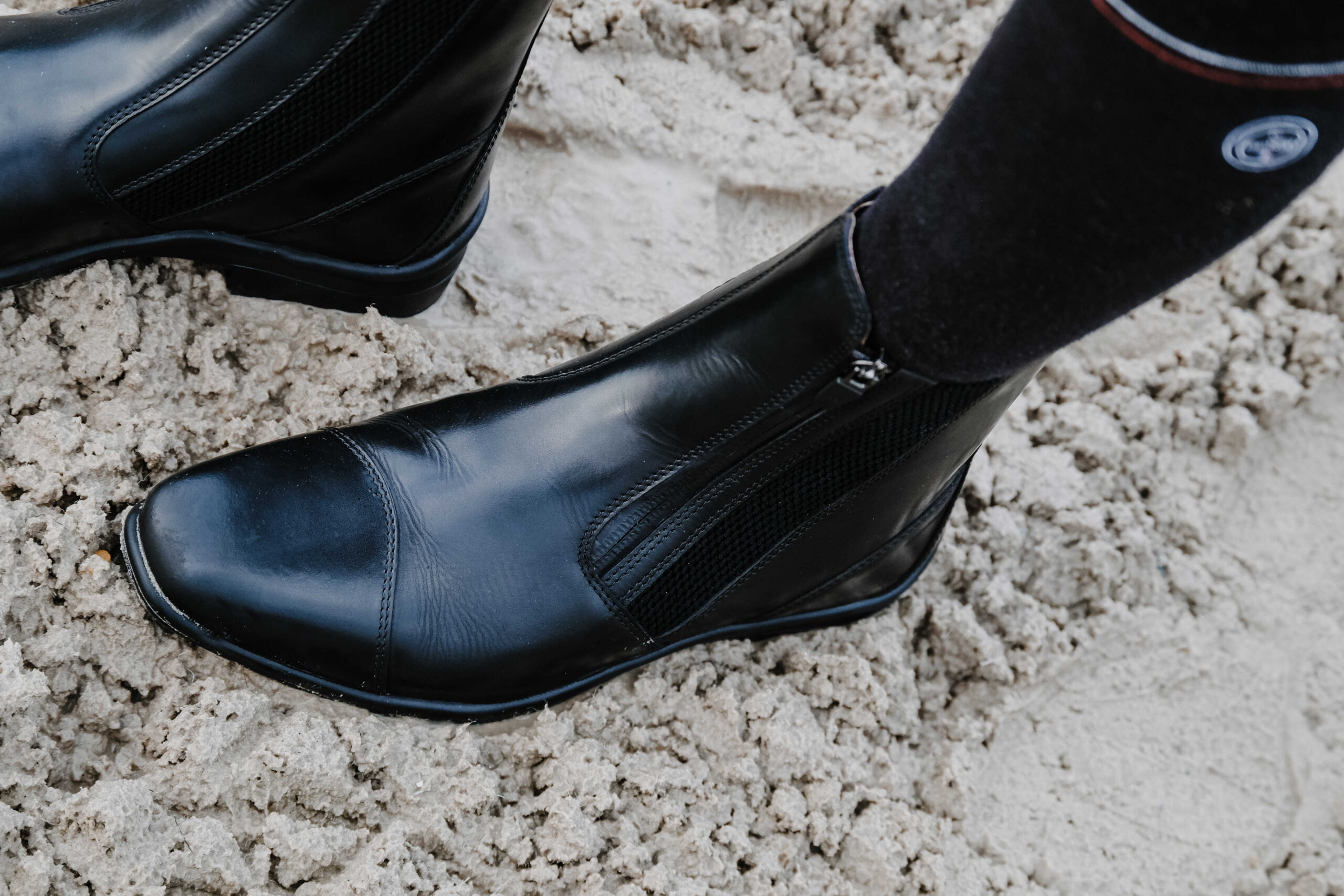 – Crossed elastic band at the front and wide elastic inserts on both sides.