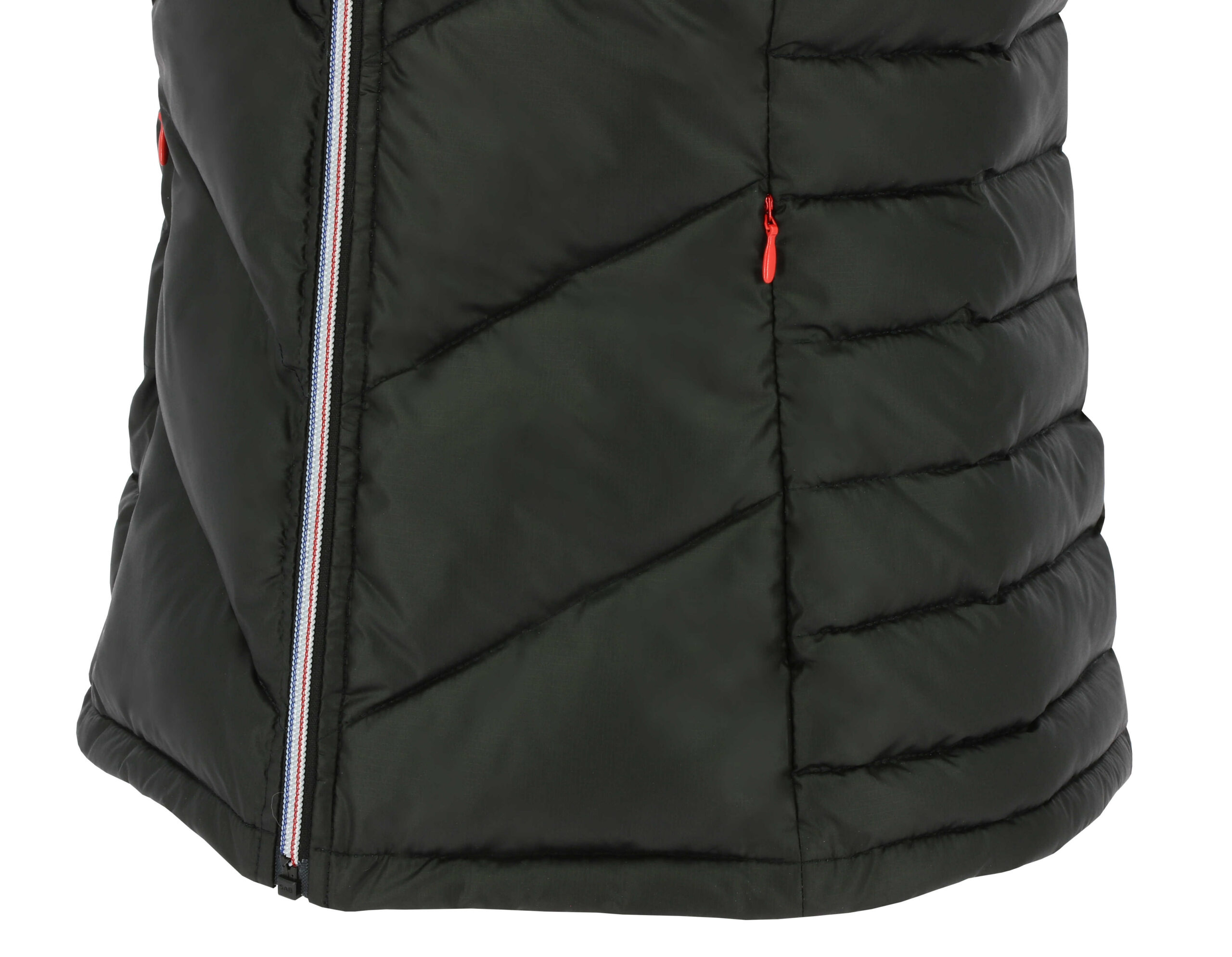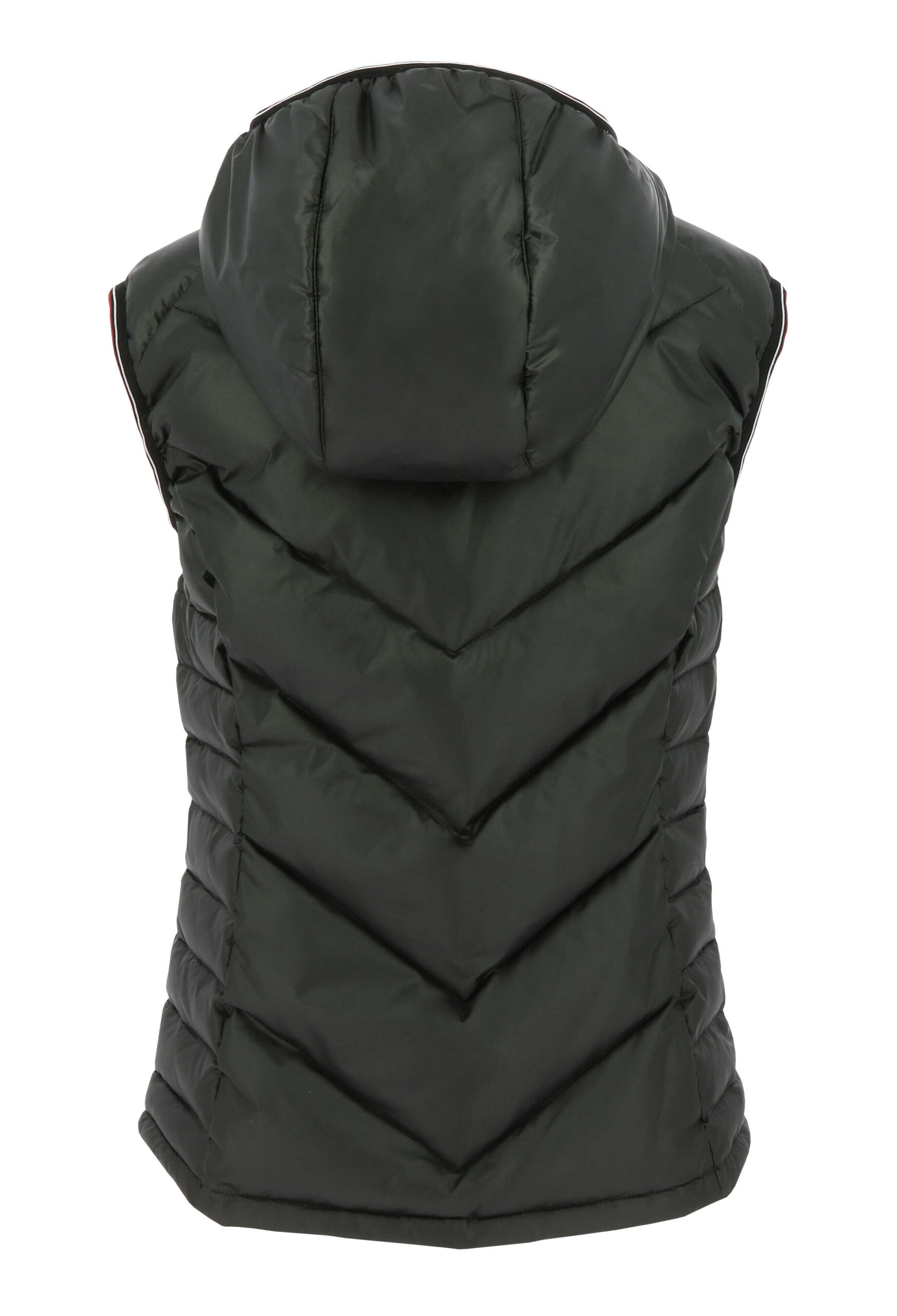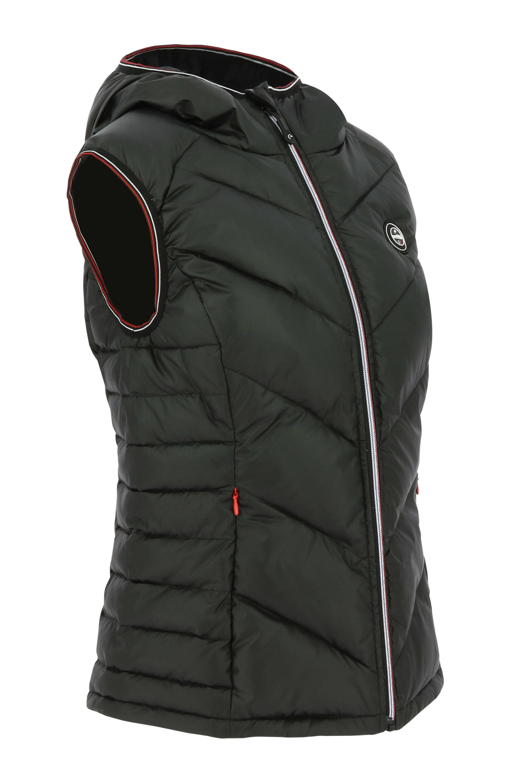 Gilet sJahre sleeves quilted and warm thanks to its “ball padding” filling.FEATURESWater repellent: The outer fabric has undergone a DWR (Durable Water Repellent) water repellent treatment.Insulation: Polyester fiber quilting FEATURES- Front zip closure.- Zipped hand pockets.- Hood attachment system at the back.- Elastic bias at the hood edge and armholes.- Fitted cut.Main material: 100% recycled polyesterPadding: 100% polyester