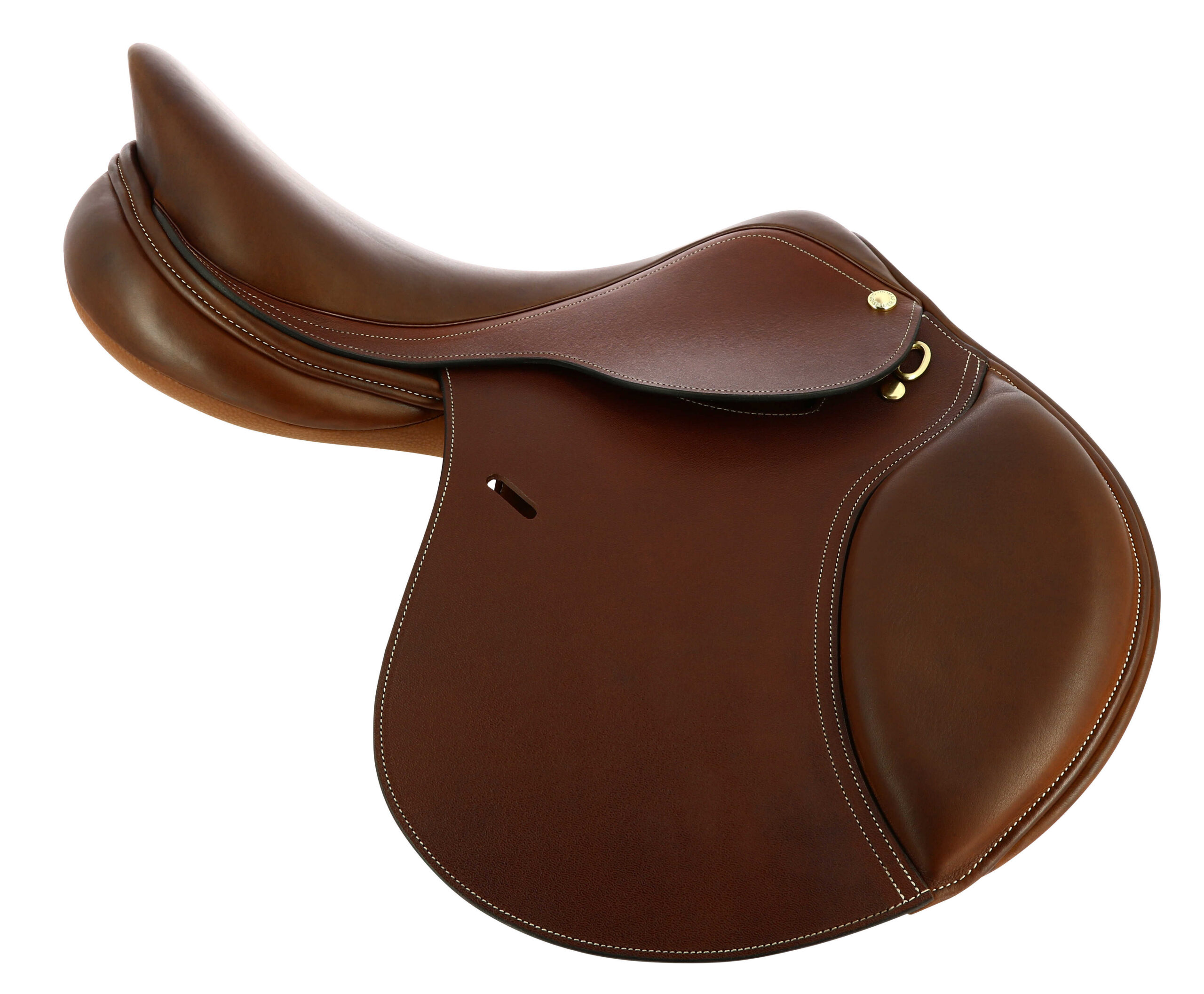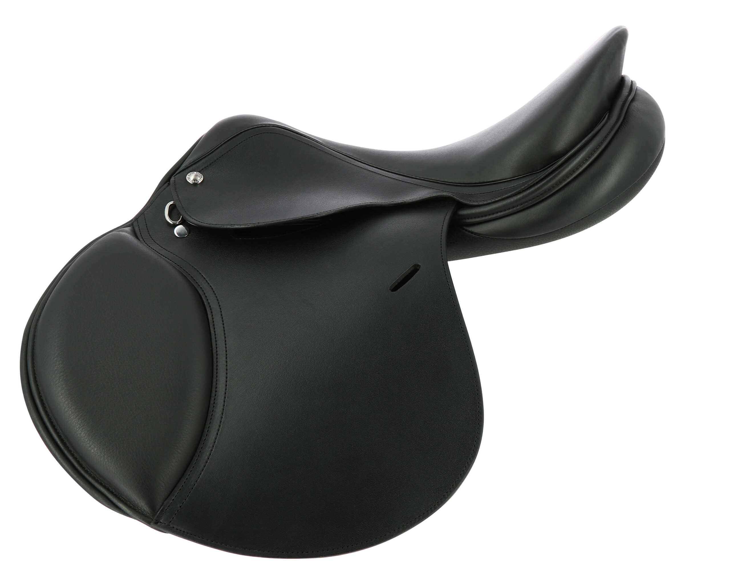 Jumping saddle made of leather and Clarino microfiber.