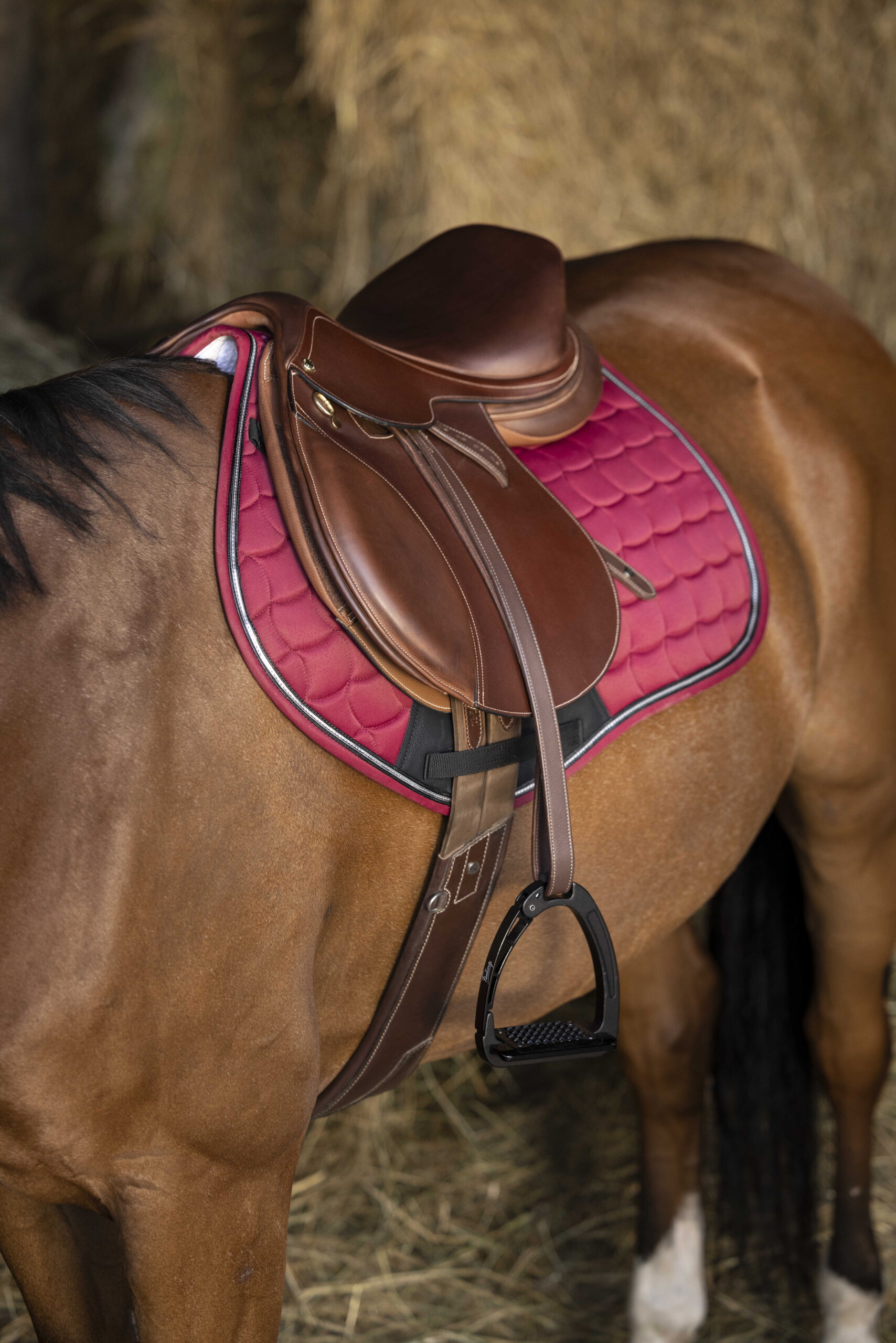 – Stirrup leather hooks made of stainless steel and girth straps made of chrome-tanned buffalo leather.