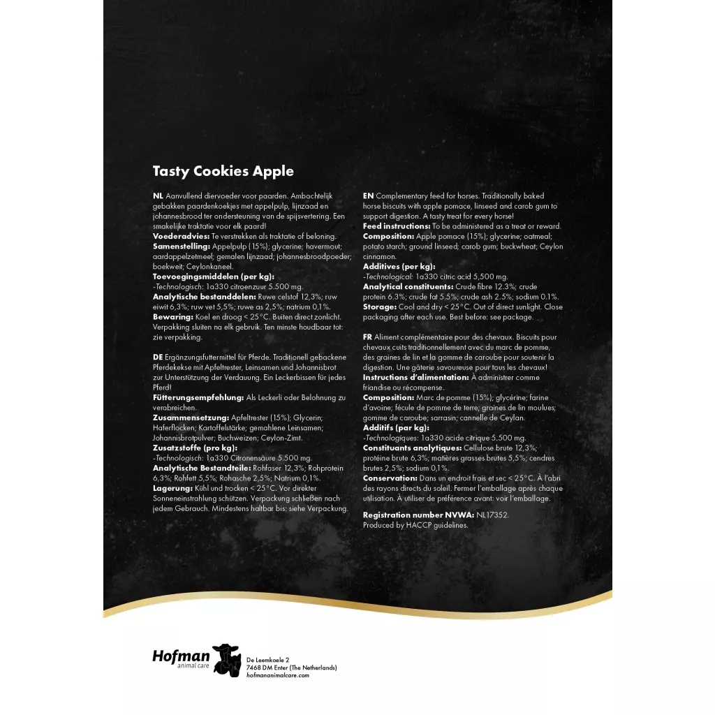 The base of these artisan biscuits consists of carefully selected raw materials, including apple pulp, linseed, carob and natural additives for extra flavour and digestive support.