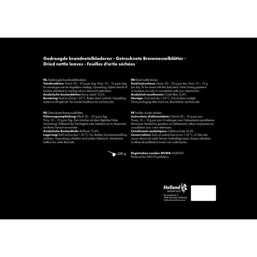Horse: 20-30 g per day.