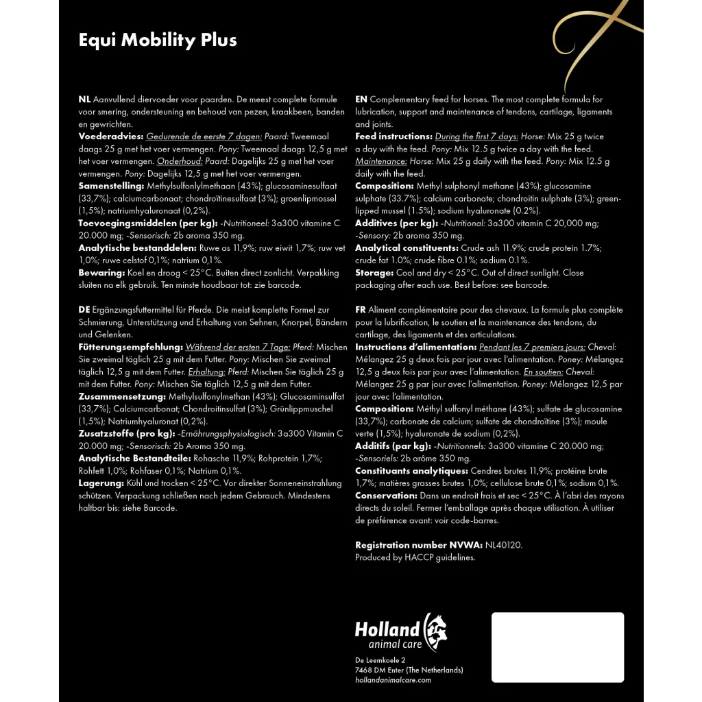 Equi Mobility Plus is the most complete formula for lubrication and support of tendons, cartilage, ligaments and joints.
