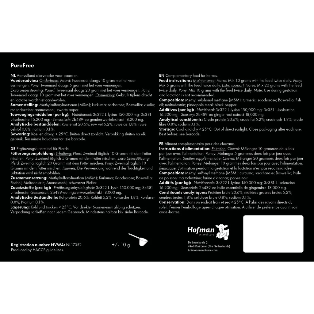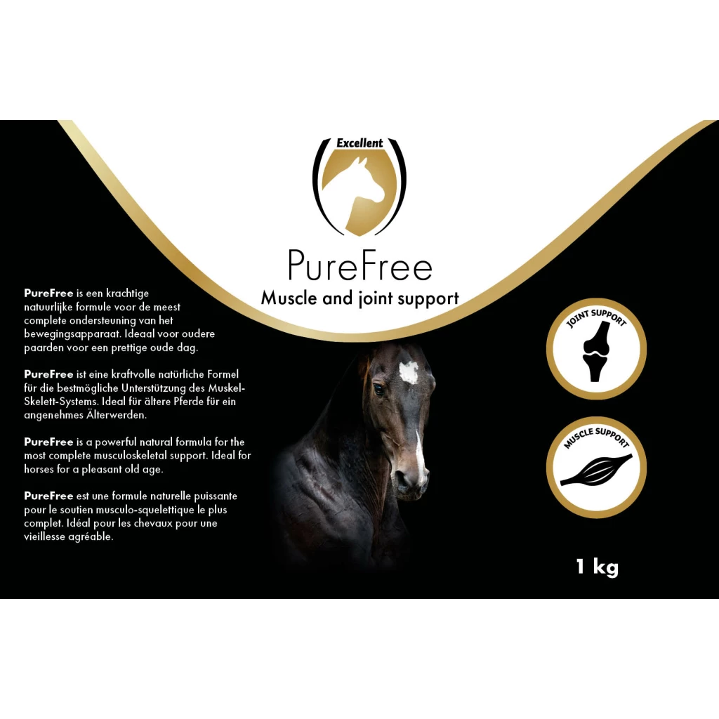 Excellent Horse PureFree is a complementary feed for horses in powder form. It is a powerful, natural formula for the most complete musculoskeletal support. PureFree is free and safe to use in all (sport) horses.