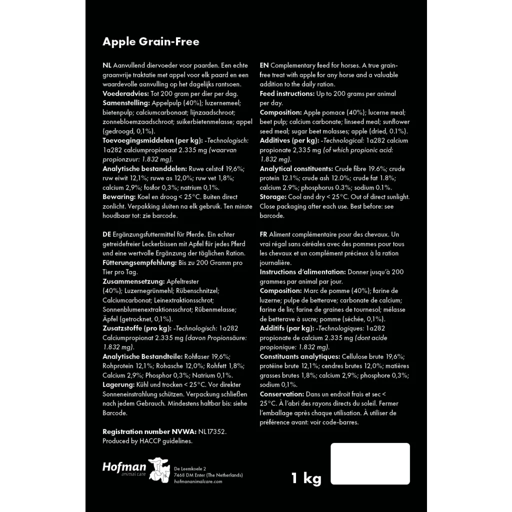 Grain Free Apple on maitsev ja tervislik preemiana antav tรคiendsรถรถt hobustele, mis ei sisalda teravilja. See on ideaalne preemia โ maitsev, kuid kerge maius, mis ei lisa liigseid kaloreid, ning samal ajal vรครคrtuslik tรคiendus hobuse igapรคevasele ratsioonile. Tรคnu kindlalt kokkupressitud graanulitele need ei kleepu ega pudene ning neid on mugav taskus vรตi kotis kaasas kanda.