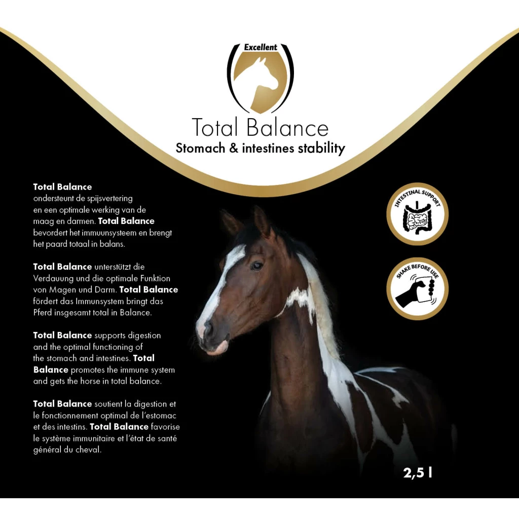Equi Total Balance improves the optimal functioning of the stomach and intestines and brings the horse into total balance.