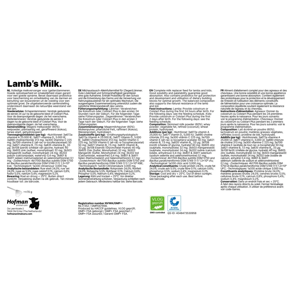 Lamb milk has a high amount of skimmed milk powder for an optimal growth and resistance.