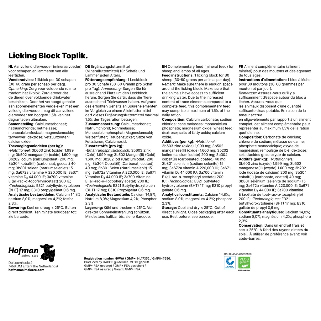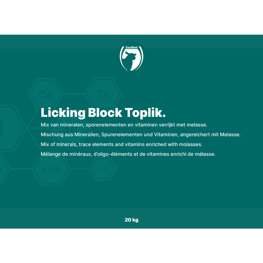 The balanced Lickbucket Toplik ensures a supplement for vitamins, minerals and energy for important periods such as during the pasture period, growth period, and mating period and birth period!