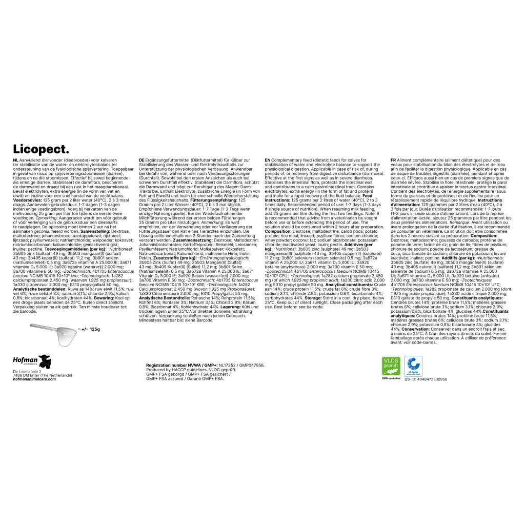For calves in case of risk of digestive disorders (diarrhoea). Quickly resolves digestive disorders and prevents backlash in growth.