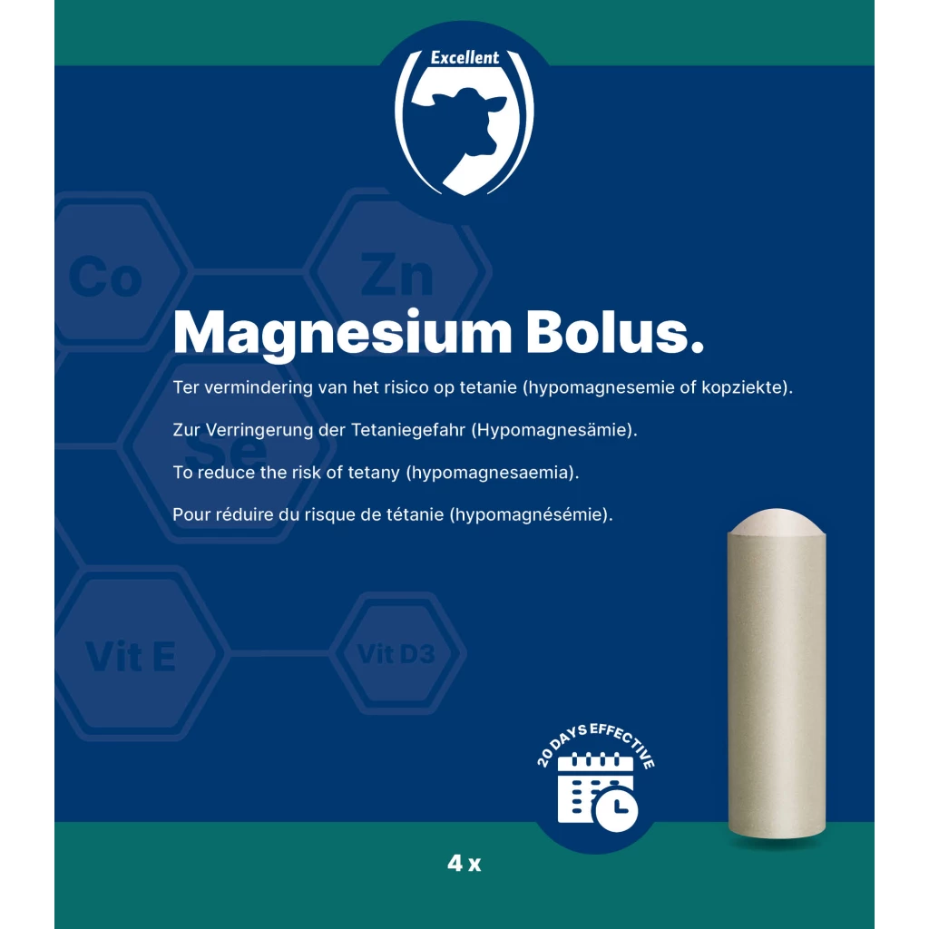 Magnesium bolus for cattle with a 20-day effect.