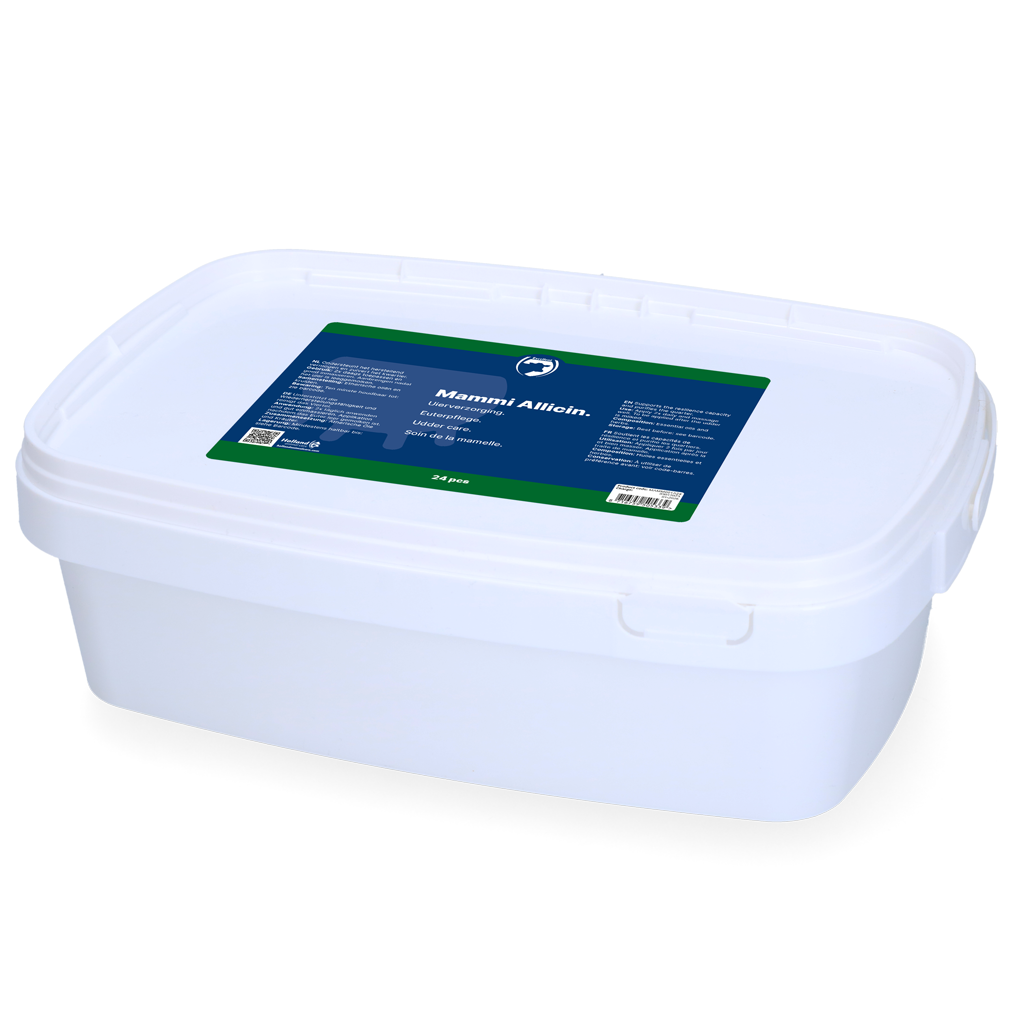Apply after the utter has been milked. Treat the udder skin with the ethanol wipe included, so that the pores of the skin will open. Ethanol supports the absorbing capacity of the udder skin.