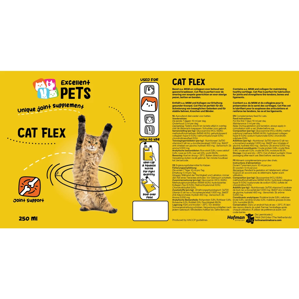 Excellent Pets Cat Flex is a complementary feed for cats in liquid form. It contributes to supple joints and firm bones, tendons and ligaments.