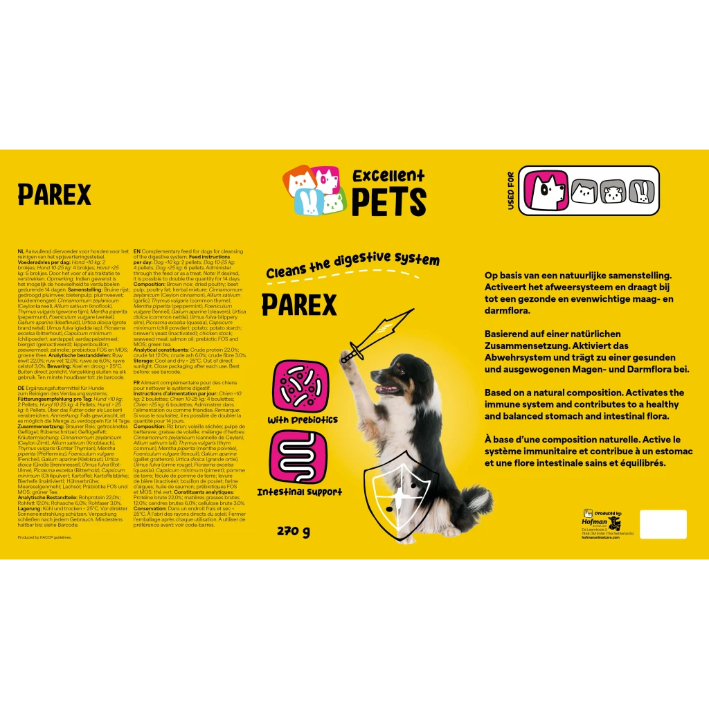 Excellent Pets Dog Parex is a complementary feed for dogs in kibble form. It activates the immune system and contributes to a healthy and balanced gastrointestinal flora.
