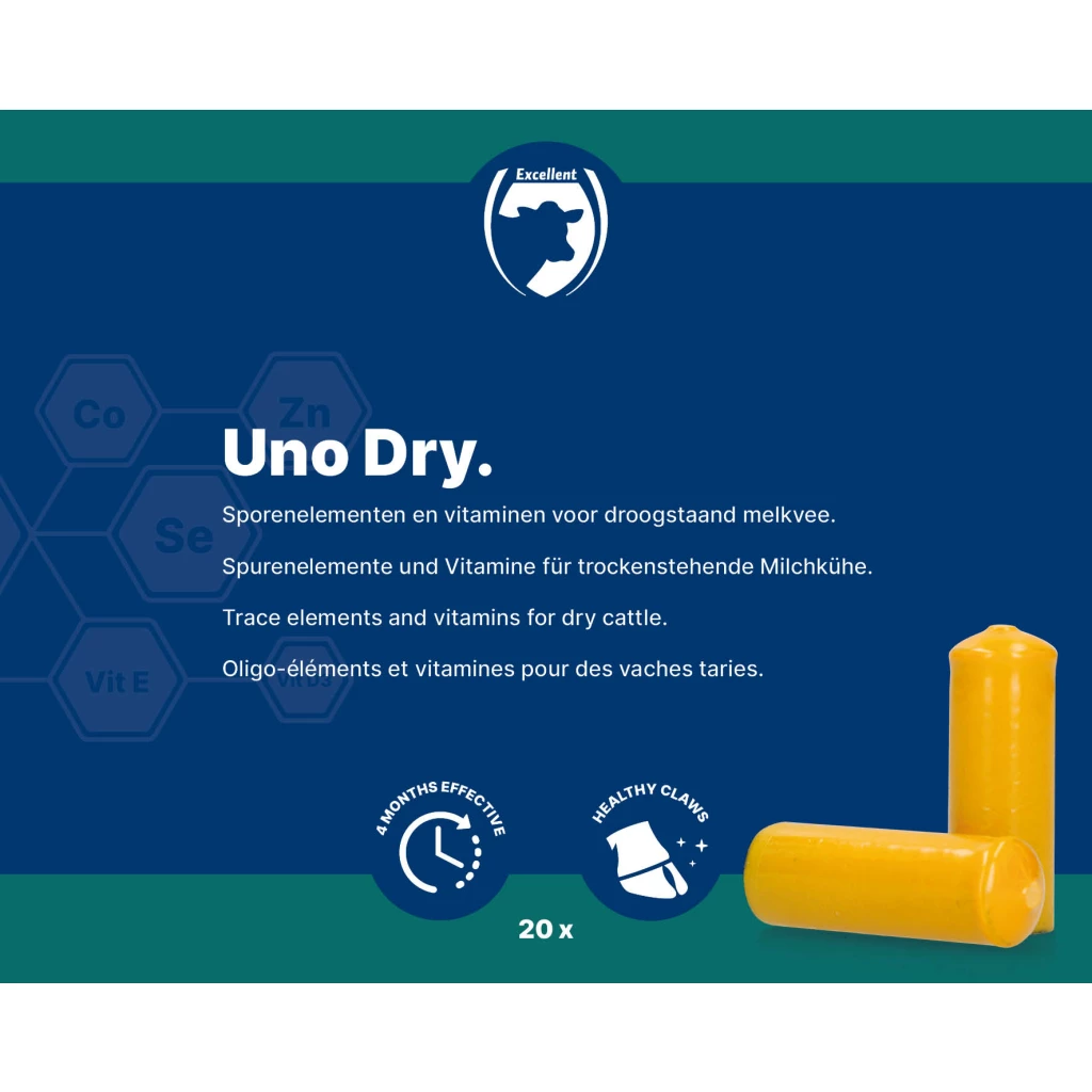 20 UNO Dry boluses in a box (= sufficient for 10 cows).