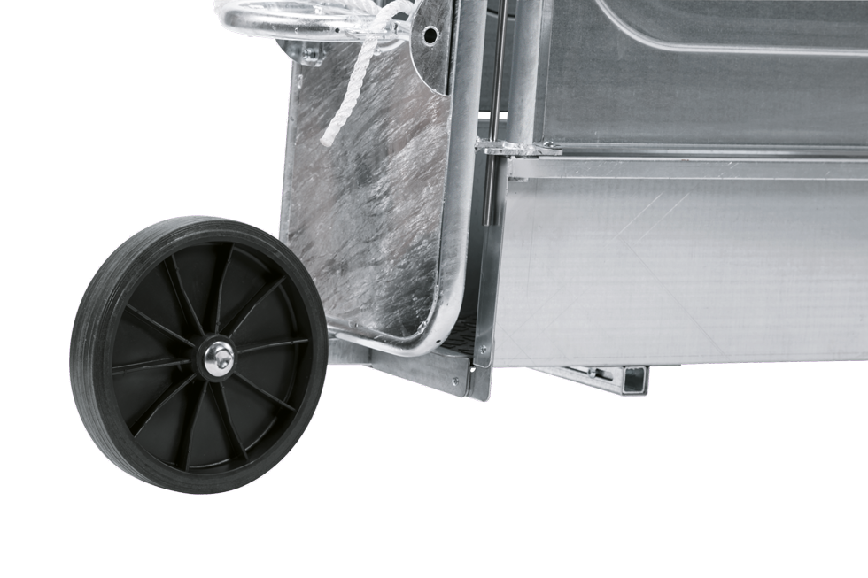 This kit consists of a large plastic wheel and handles, which can be mounted on the Restraint cage. With this accessory, the cage is easy to move. Both the wheel and the handles are easy to remove.