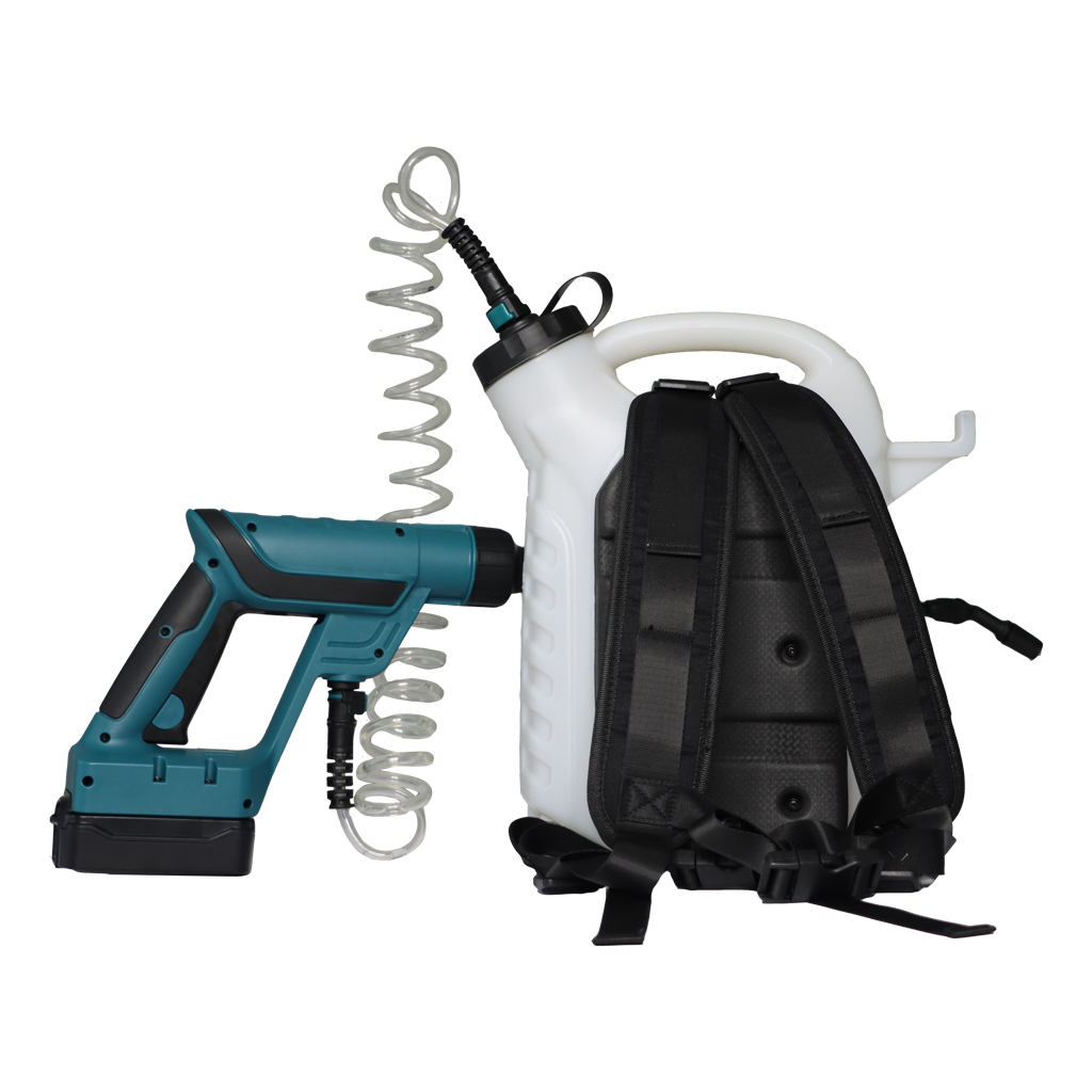 Versatile battery-powered backpack sprayer for applying insecticides, herbicides and fungicides. Very suitable for applying claw care products. Equipped with a 180 cm spiral hose.