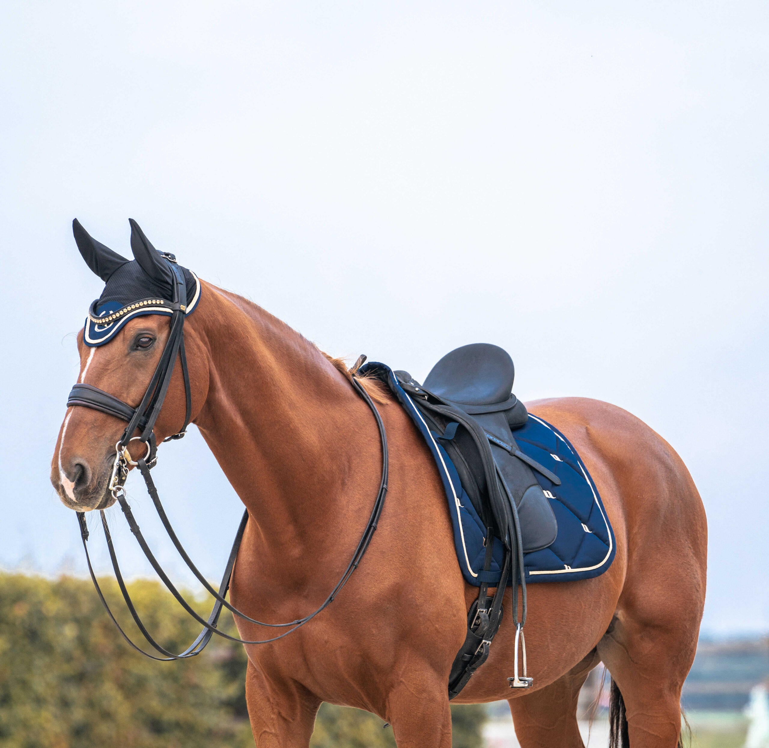 Elegant and stylish fly veil matching the Night Collection saddle pad