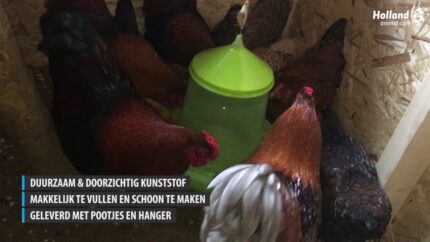 Poultry drinker, made of durable plastic.