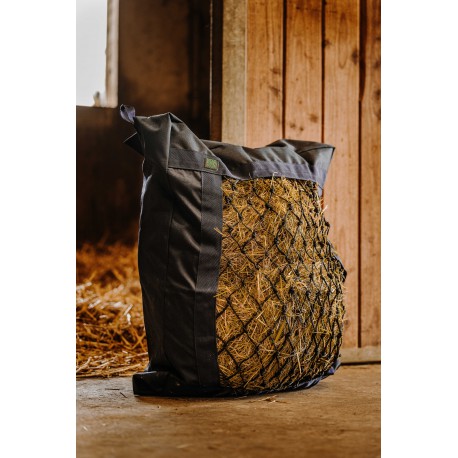 – Hook-and-loop closure: Facilitates access to the hay and keeps the closure securely in place.