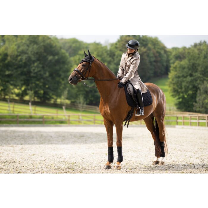 Alpine parka on loodud aktiivsele ratsanikule, kes vajab igapรคevaselt sooja ja kaitset. Vetthรผlgav ja hingav materjal (veepidavus kuni 3000 mm, teibitud รตmblused) kaitseb vihma ja tuule eest, samal ajal kui mustust hรผlgav pind hoiab mantli kaua puhtana. Pikem lรตige ja kรผlgmised ratsutamislรตhikud helkurdetailidega tagavad liikumisvabaduse sadulas.