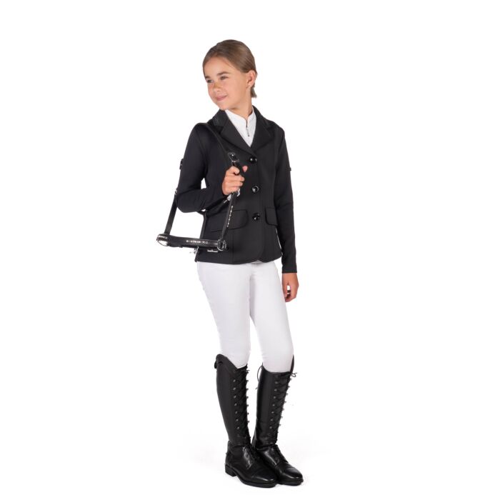 Stiilne ja praktiline valik noorele ratsanikule, kes soovib vรตistlustel vรคlja nรคha korrektne ja tunda end mugavalt.