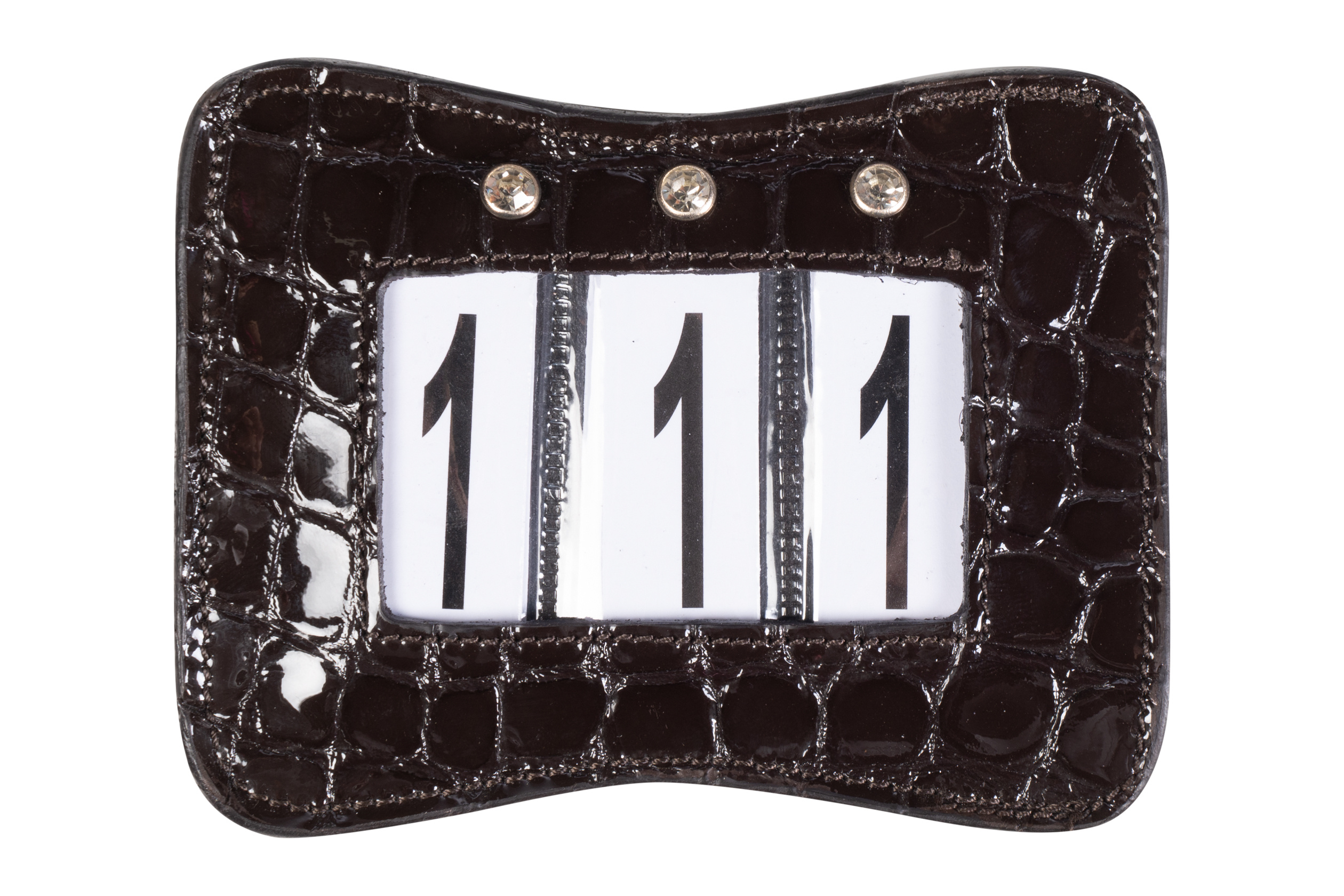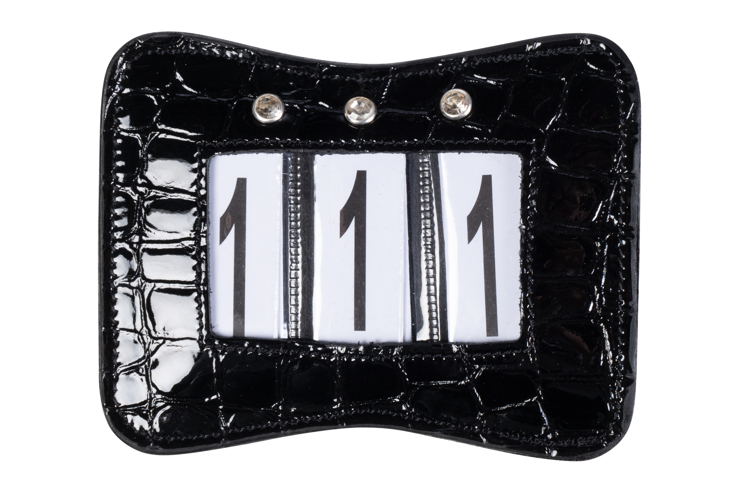 quality leather 1 pair|decorations with crystal stones|including safety pin for attachment to the saddle cloth|flap with press studs for quick attachment to the bridle|foldable 3-digit start number with interchangeable numbers (0-9)