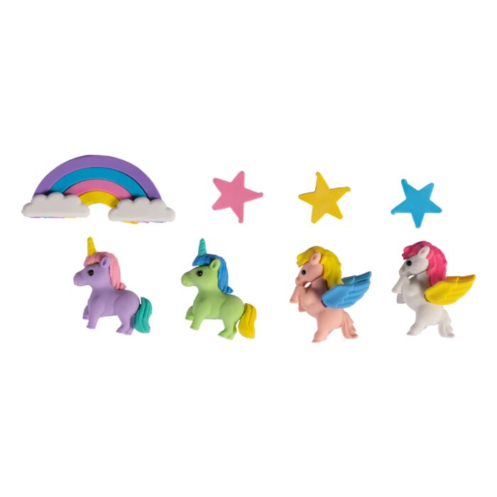 Lรตbus ja vรคrvikas kustukummide komplekt, mis sobib suurepรคraselt koolikotti vรตi vรคikseks kingituseks. รkssarvikuteemalised detailid muudavad komplekti eriti armsaks ja mรคnguliseks.