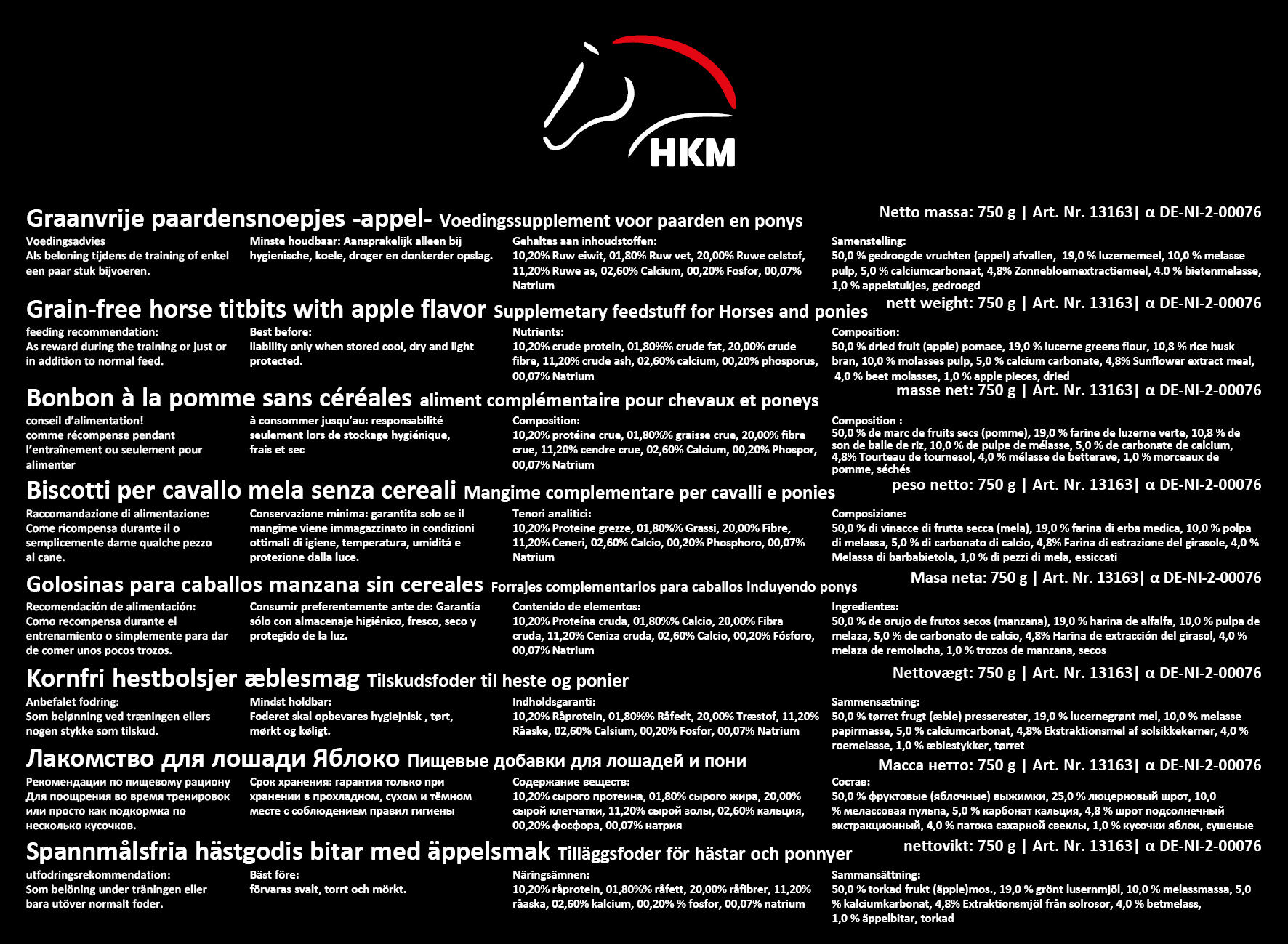 Maitsvad ja tervislikud รตunamaitselised maiused hobustele ja ponidele. Teraviljavaba koostis teeb need maiused kergesti seeditavaks ning sobivaks ka tundliku seedimisega hobustele. Sobivad igapรคevaseks premeerimiseks treeningu, vรตistluste vรตi hoolduse kรคigus.