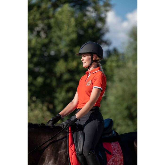 Klassikaline ja mugav polo sรคrk, mis sobib suurepรคraselt nii ratsutamiseks kui ka igapรคevaseks kandmiseks. 100% puuvillane materjal on nahasรตbralik ja hingav, samas kui kehasse hoidev lรตige annab korrektse ja viisaka vรคlimuse nii tallis kui ka vabal ajal.