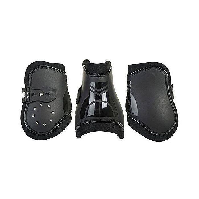Stiilne ja praktiline jalakaitsmete komplekt, mis pakub hobuse jalgadele usaldusvรครคrset kaitset nii treeningul kui ka koplis. Eelvormitud plastikkest kaitseb lรถรถkide eest, samas kui pehme sisemine tรคidis tagab mugava ja hรคsti istuva sobivuse. Elegantne viimistlus sรคdelevate kivikestega lisab varustusele luksuslikku ilmet.