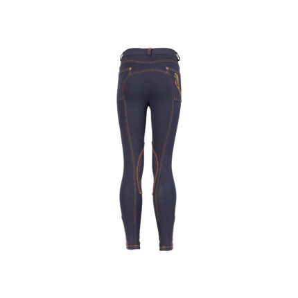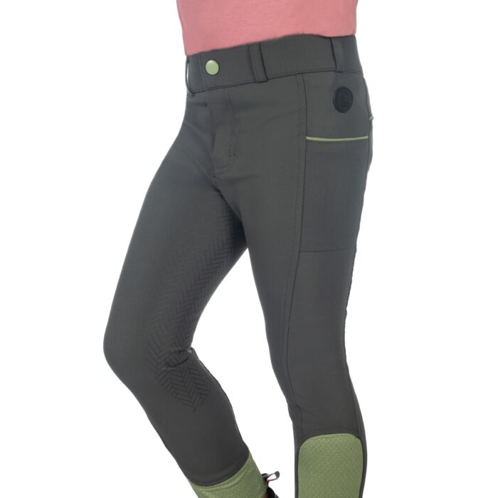 The riding breeches Claire for children combine comfort and functionality in a stylish design. The high-quality 4-way stretch material ensures optimum freedom of movement and a perfect fit. The size-adjustable elasticated waistband guarantees an ideal fit and can be individually adjusted. Special accents are provided by the contrasting coloured piping, which gives the breeches a modern touch, and the breathable mesh leg cuffs, which ensure pleasant air circulation. The two practical slit pockets and belt loops also make these breeches the perfect everyday companion. The silicone full seat also provides a secure hold in the saddle and ensures that your child sits firmly and comfortably at all times.