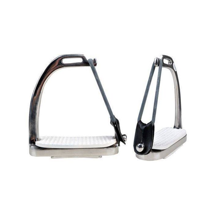 Tugevad ja vastupidavad turvajalused, mis on valmistatud kvaliteetsest roostevabast terasest. Turvakonstruktsioon aitab vรคhendada ohtu, et jalg jรครคb kukkumise korral jalusesse kinni, pakkudes ratsanikule suuremat turvalisust.