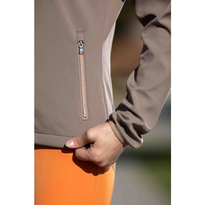 Praktiline softshell-ratsajakk, mis รผhendab stiilse taljesse lรตike ja tehnilised omadused. Kaitseb tuule ja kerge vihma eest ning on vastupidav ka mustusele. Kaksipidi avatav lukk muudab selle eriti mugavaks ratsutamisel.