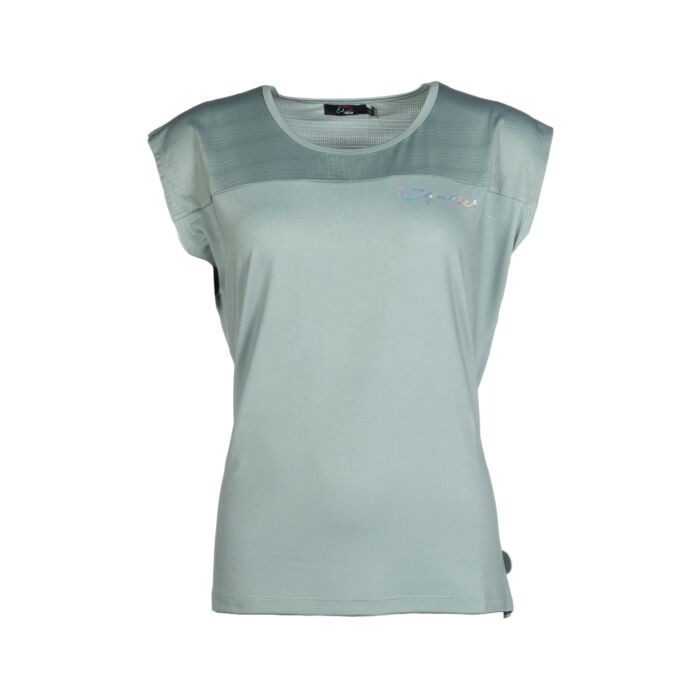 breathable|elastic|fast drying machine washable at 30 degrees outer fabric: 88% polyester, 12% elastic|mesh: 92% polyester, 8% spandex inset of non-transparent mesh|with holographic print|back cutout|overcut sleeves