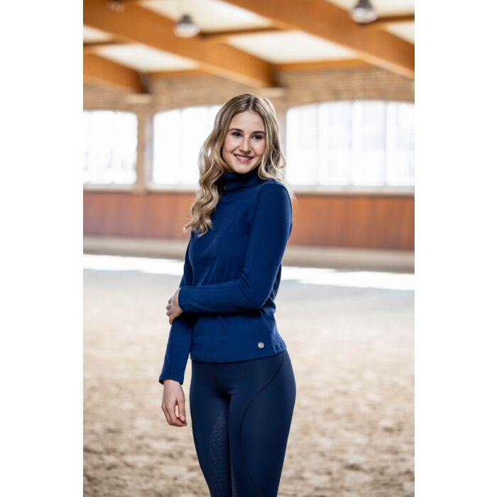 Soe ja elastne kรตrge kaelusega pluus,ย mis sobib ideaalselt kรผlmemateks pรคevadeks nii talli, treeningule kui ka igapรคevaseks kandmiseks. Seest pehmelt harjatud materjal hoiab hรคsti sooja ning tagab mรตnusa ja kehasรตbraliku istuvuse.